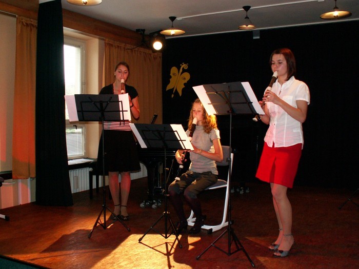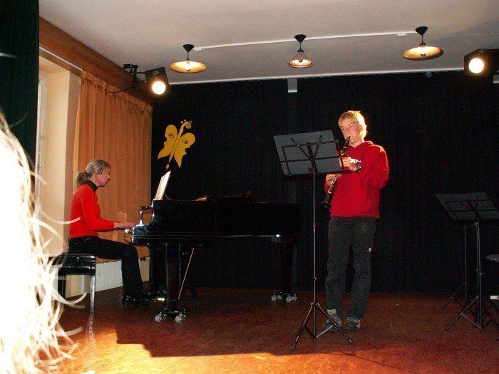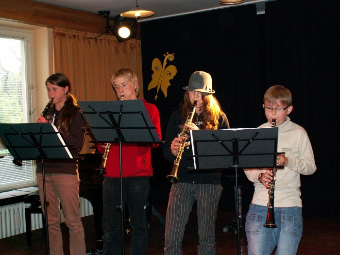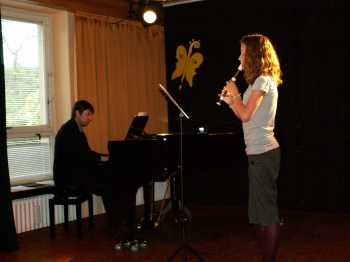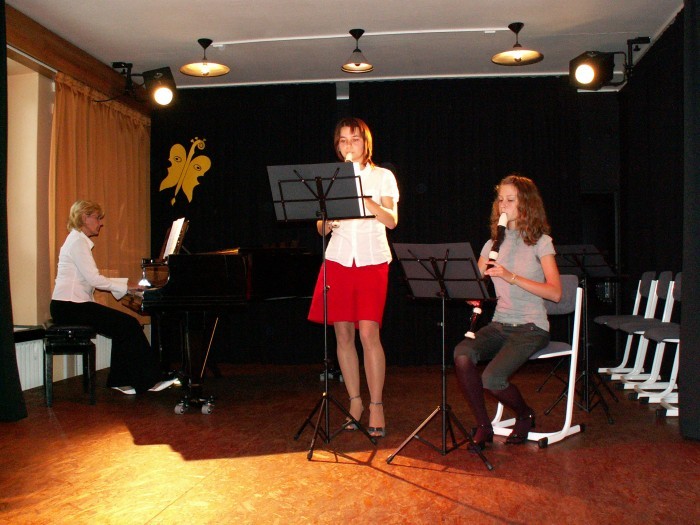 Žáci ze třídy J. Nývltové: Simona Chocholoušová, Zuzana Brožková - zobcové flétna. Ze třídy Jiřího Bílka: Kristina Paulů a Adam Waněk - klarinety.