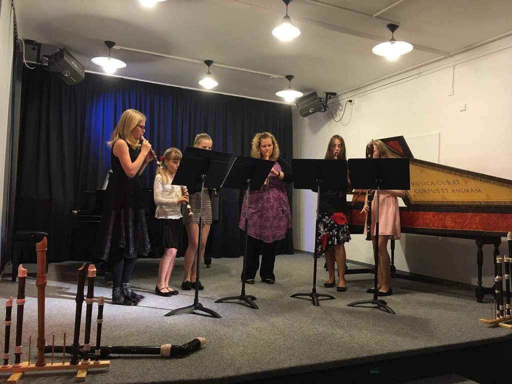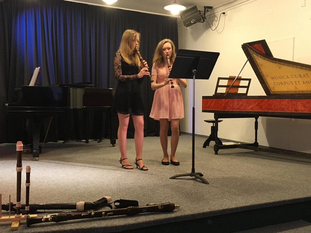 Obrázky z absolventského koncertu flétnistek Anety Cabákové a Markéty Maškové ze třídy Zuzany Havlové.