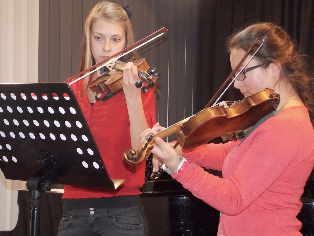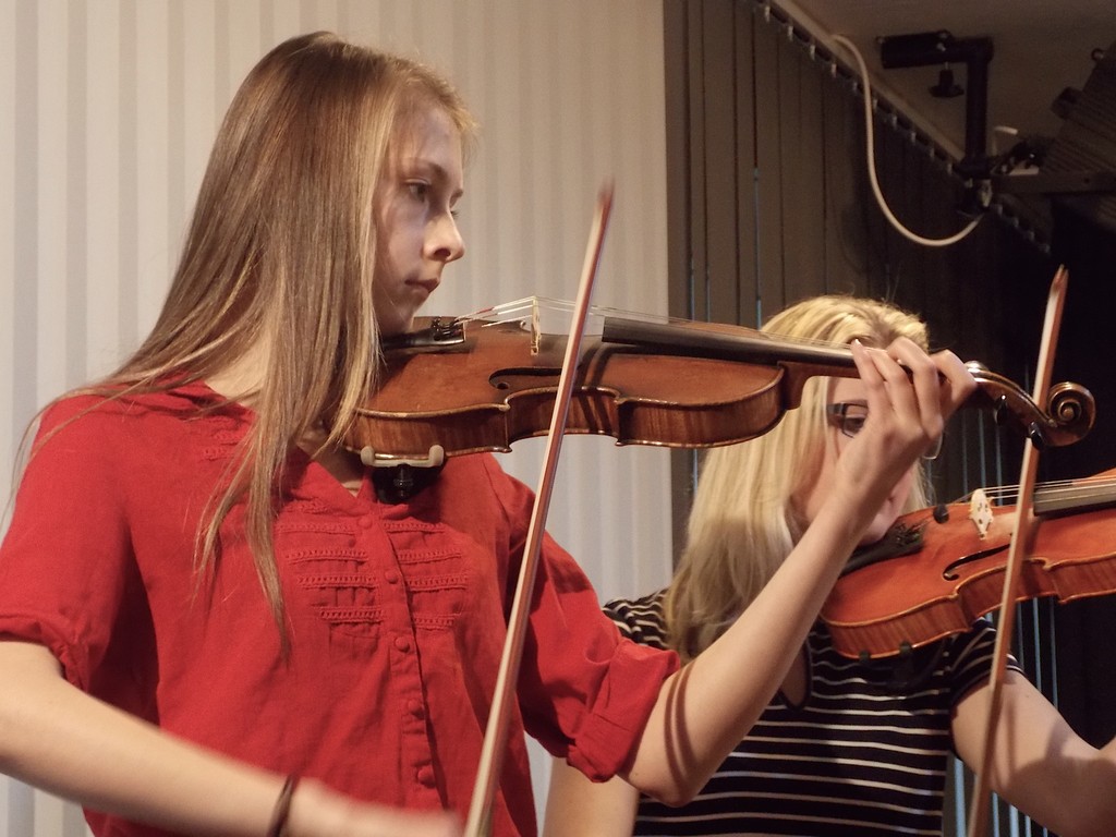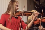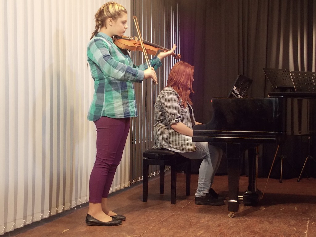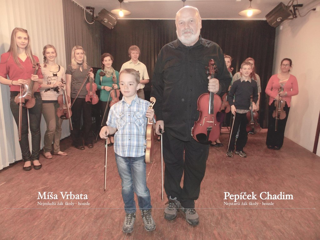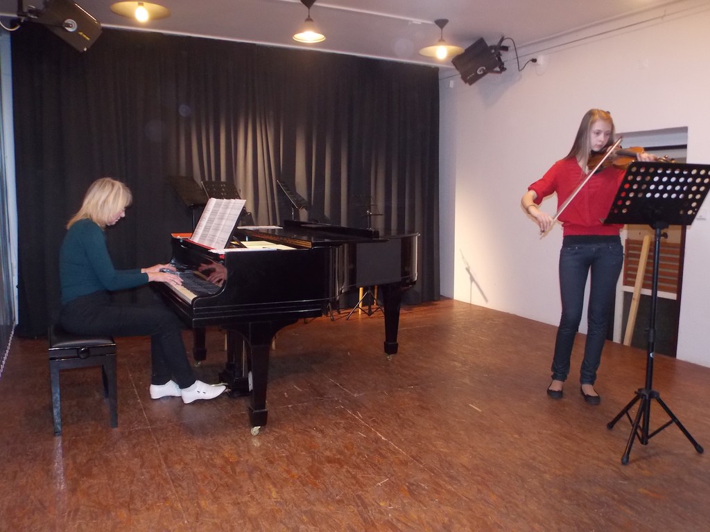 Obrázky z vystoupení žáků houslové třídy.