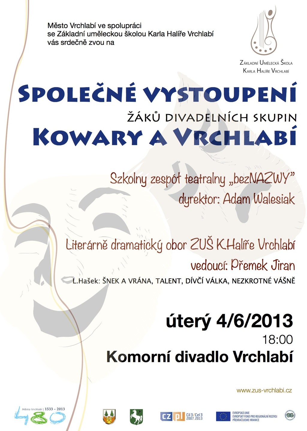 V rámci projektu výročí 480 let města Vrchlabí a 500 let Kowar vystoupily společně skupiny žáků naší školy a z partnerského města Kowary.