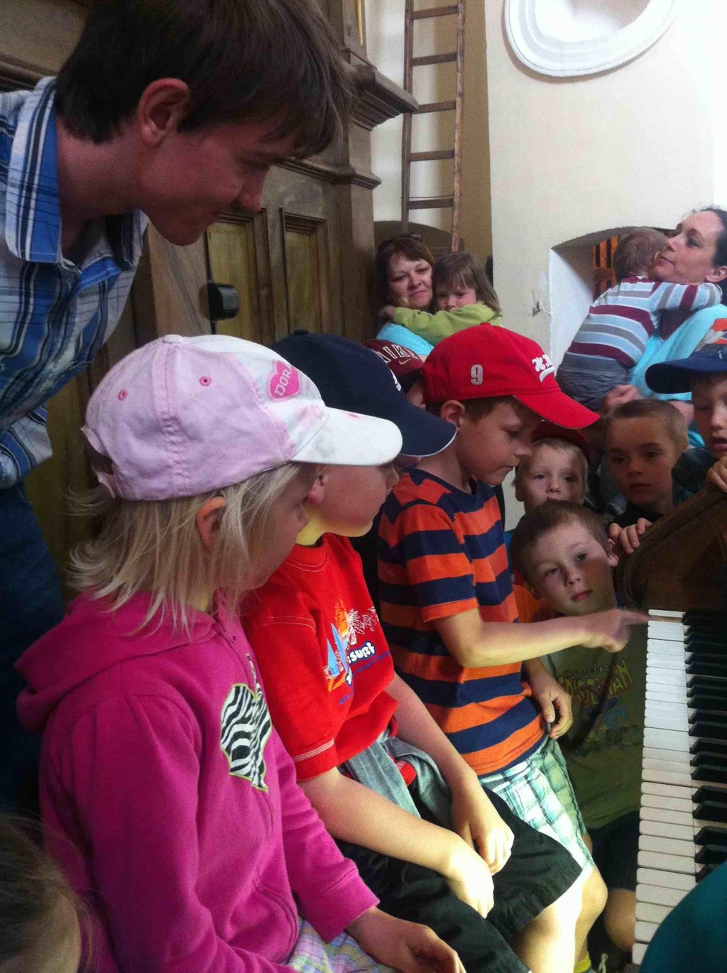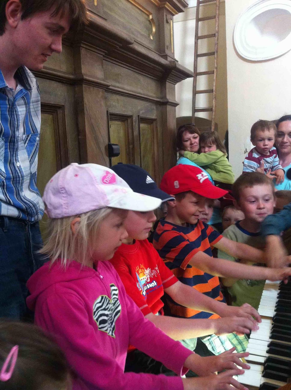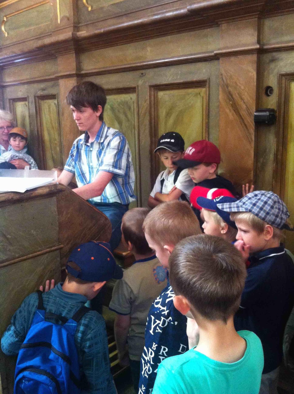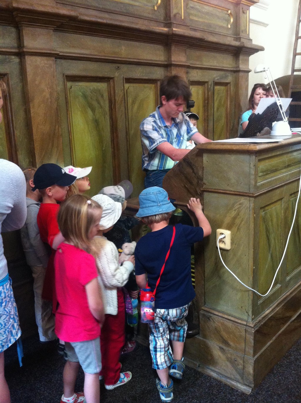 Obrázky z návštěvy žáků PHV do klášterního kostela sv. Augustina, kde proběhla prohlídka varhan.