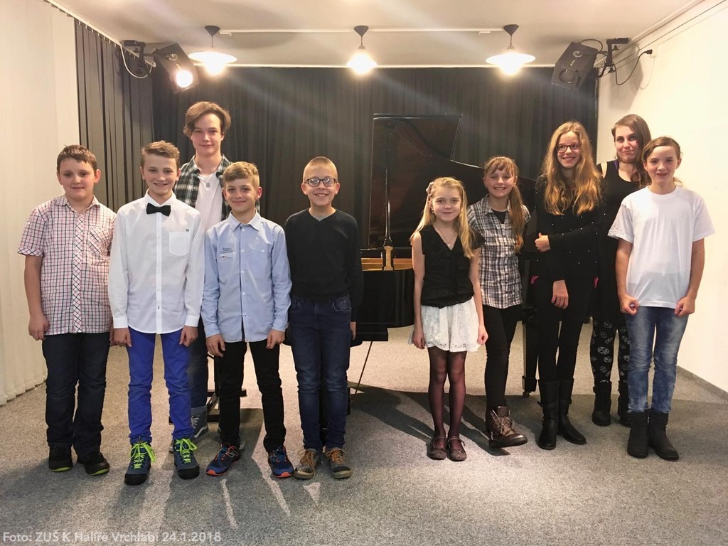 Ve středu 24. ledna 2018 účinkovali žáci čtvrtých a pátých ročníků oboru hra na klavír na klavírních pololetních přehrávkách. Každý z žáků zahrál jednu etudu nebo technické cvičení a jednu libovolnou skladbu.