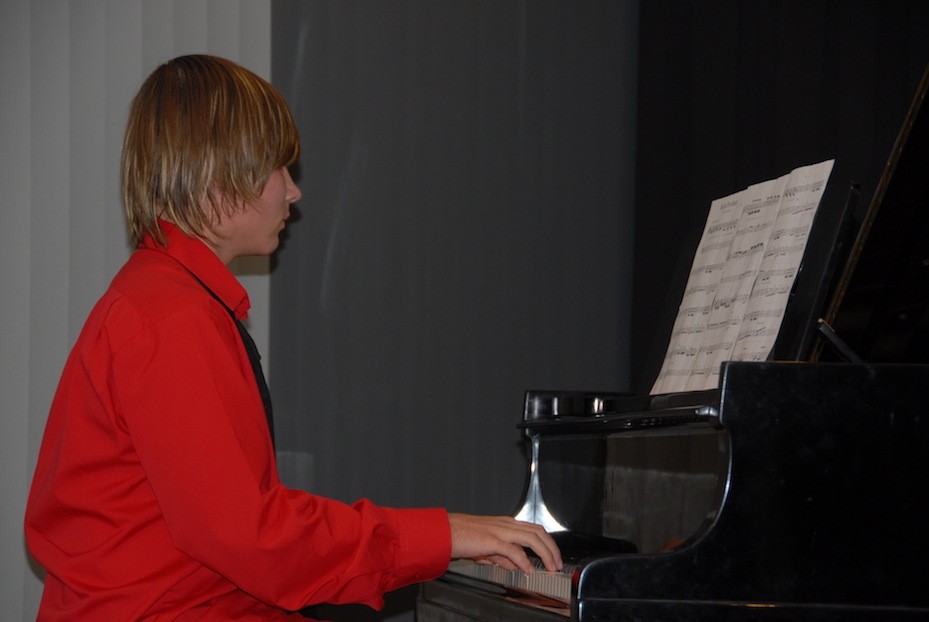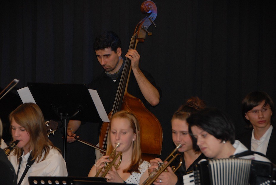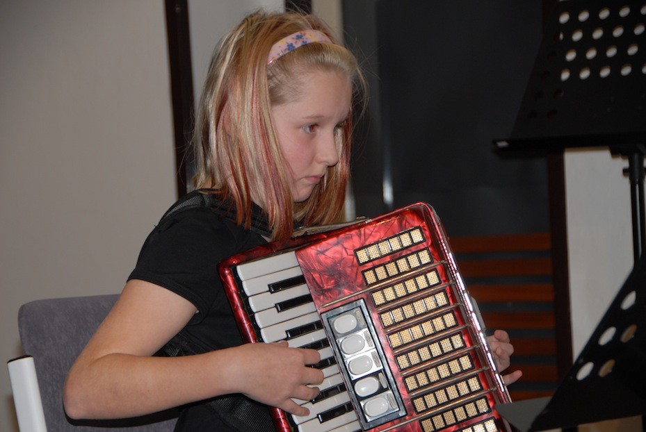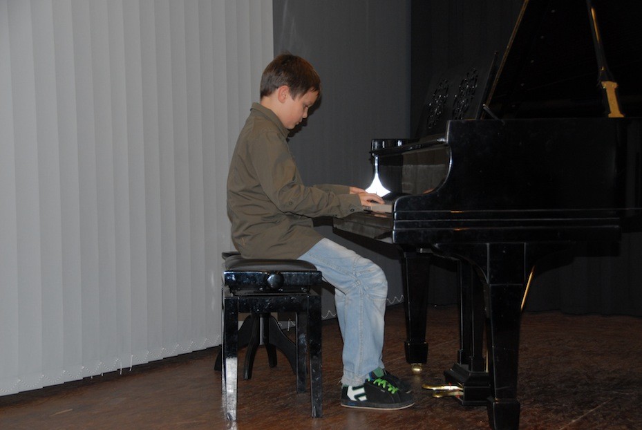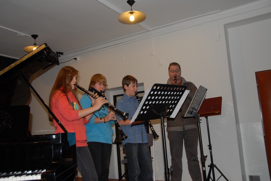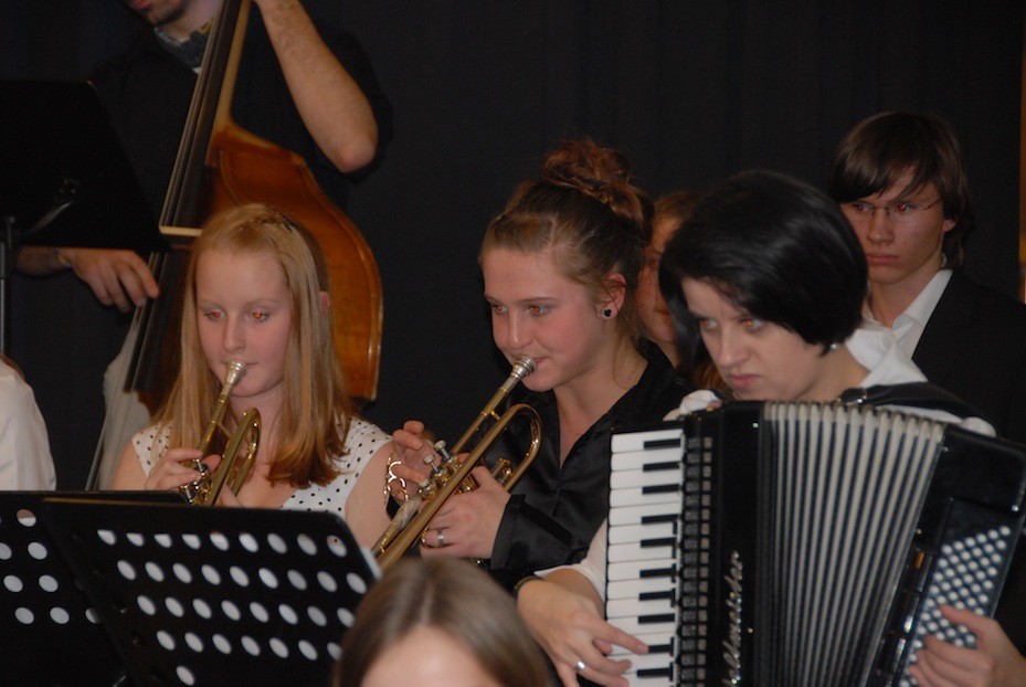 Obrázky z Koncertu žáků, na kterém poprvé vystoupil Školní orchestr.