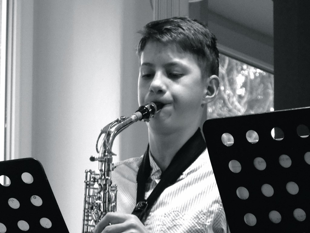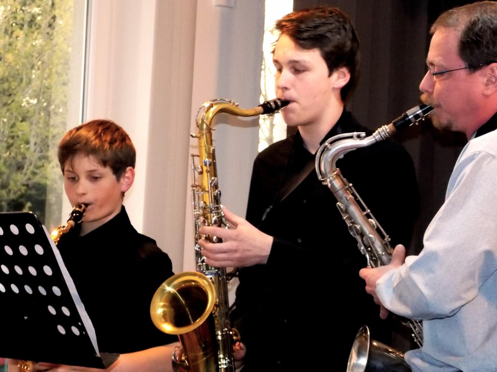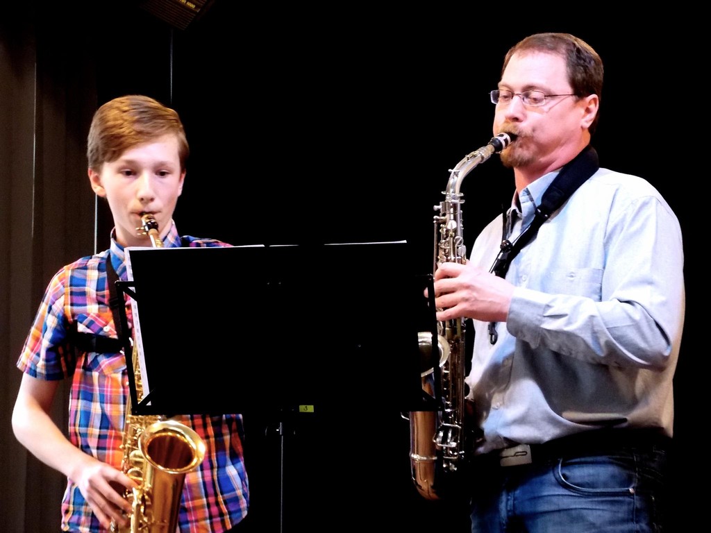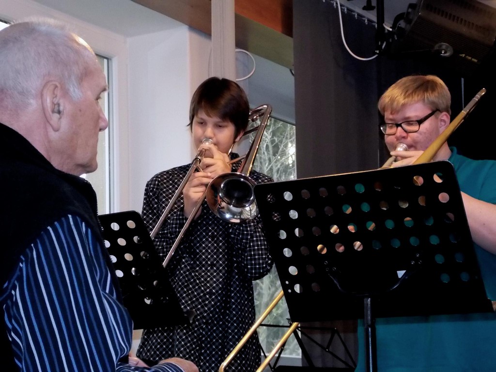 Obrázky z koncertu žáků, kteří se v naší škole věnují studiu hry na dechové nástroje.