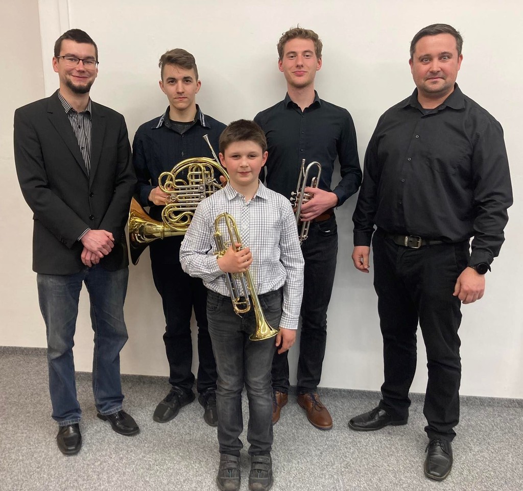 Žáci žesťového oddělení pod vedením Daniela Bismilera se v dubnu s krásnými výsledky zúčastnili krajského kola soutěže žesťových nástrojů! Všem moc gratulujeme! 1.cena František Kafka - trumpeta 2.cena Petr Novotný - lesní roh 3.cena Jakub Procinger - trumpeta Klavírní doprovod - Jakub Šaroun Taxi služby - Daniel Bismiler