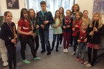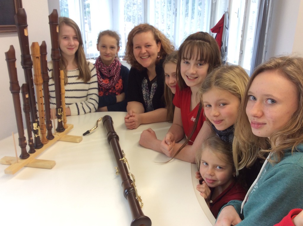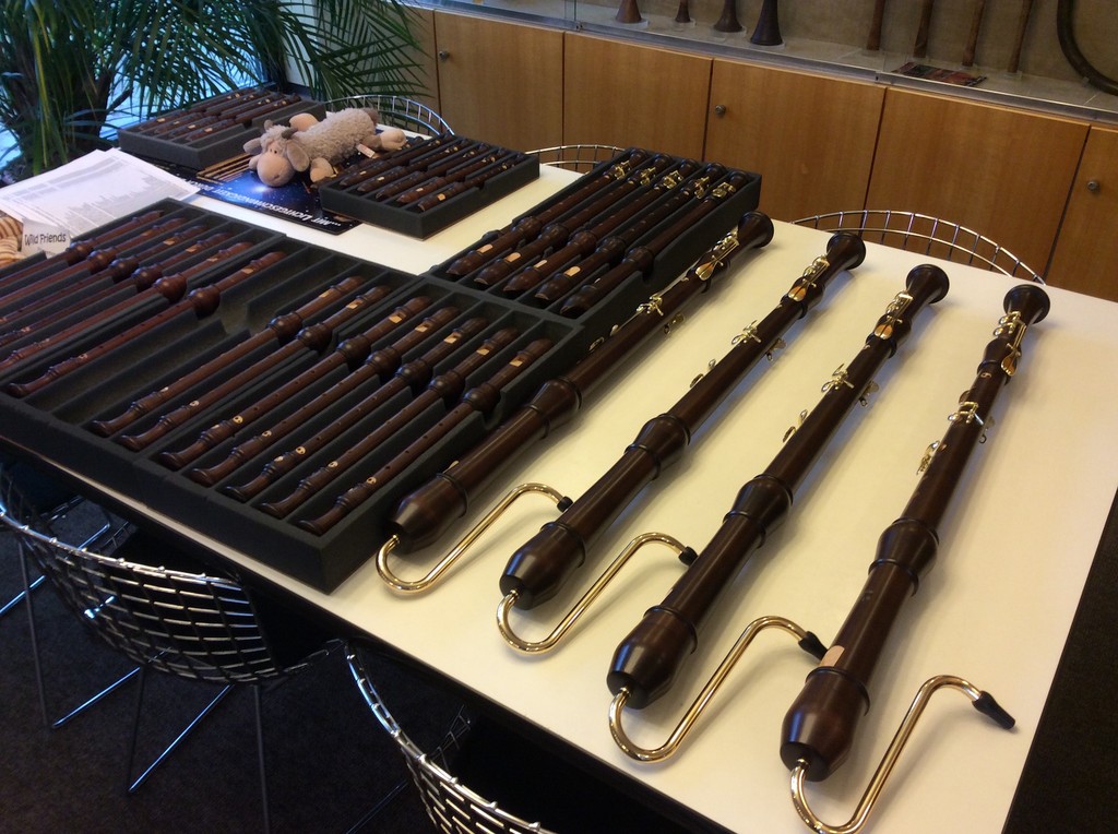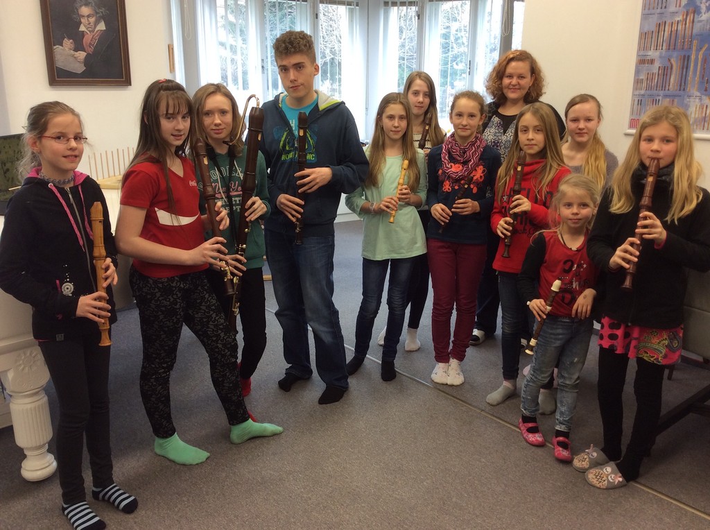 Do rodiny zobcových fléten, které jsou v inventáři naší školy, přibyly v pátek 19. února nové, krásné flétny! Konsort barokních zobcových fléten od firmy MOECK, sídlíci v krásném historickém městě Celle nedaleko Hannoveru v Německu, byl zakoupen pro potřeby našich flétnových souborů a komorních těles. Všechny flétny splňují vysoké nároky na současnou, neustále se zvyšující úroveň výuky hry na zobcovou flétnu - zejména však na hru souborovou a komorní. Tato naše nová rodina fléten byla pečlivě vybrána tak, aby všechny nástroje v ansámblu zněly zvukově kompaktně. Všechny jsou tedy z jednoho druhu mořeného dřeva (javor) a jedná se o vyšší kategorii ze sortimentu výrobce, tedy flétny třídy ROTTENBURG (největší basová flétna je kategorie RONDO). Celý konsort se skládá z těchto zobcových fléten: sopránová, dvě altové, dvě tenorové a jedna basová.