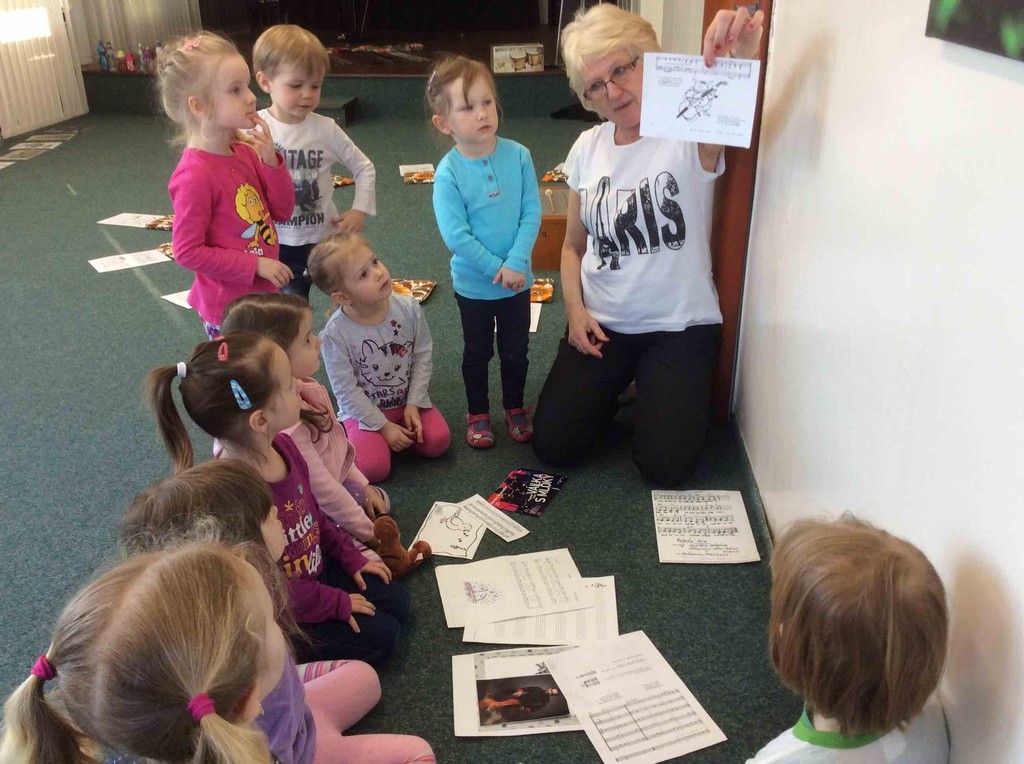 Pár obrázků z hodiny s paní Itou Cyrusovou, lektorkou kroužku Hudební školička NOTIČKA.