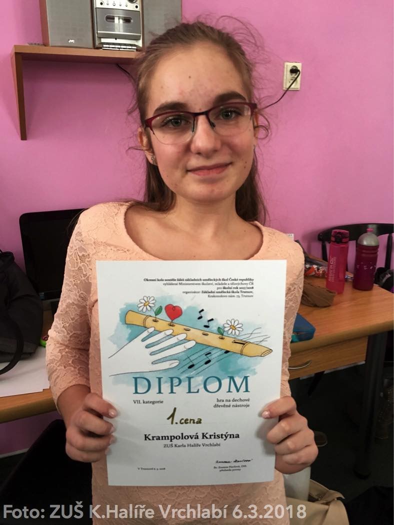 Okresni kolo dechové nástroje Trutnov proběhlo v úterý 6. března 2018 v ZUŠ Trutnov (za naši školu - zobcová flétna, příčná flétna, fagot, klarinet). Gratulujeme k úspěchům našim žákům a jejich pedagogům!