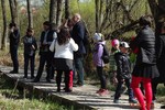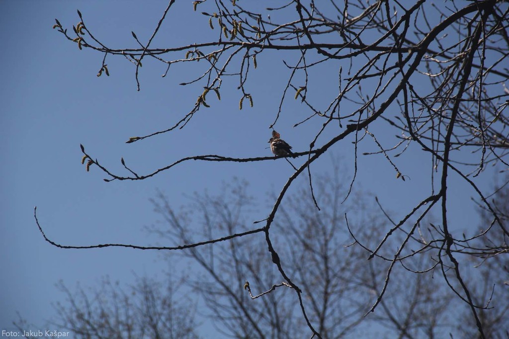 S vrchlabskou ZUŠkou za ptačím zpěvem | Jakub Kašpar, Správa KRNAP | Za ptačím zpěvem k rybníku Kačáku (tedy oficiálně na Vejsplachy) ve Vrchlabí vedla dnešní vycházka vrchlabské ZUŠ Karla Halíře s doprovodem našeho ornitologa Jiřího Flouska. Vycházka byla součástí naší spolupráce na celoročním tématu ZUŠky "Ptáctvo v umění". Poslouchali jsme budníčka menšího, kosa černého, drozda zpěvného, drozda kvíčalu, stehlíka obecného, pěnkavu obecnou, sýkory koňadru a modřinku, špačka obecného, vrabce domácího, zvonohlíka zahradního... ...a kromě nich viděli, leč neslyšeli, ještě straku obecnou, kavku obecnou, vlaštovku obecnou, konipase bílého, kachnu divokou, potápku malou, kulíka říčního, racka chechtavého...
