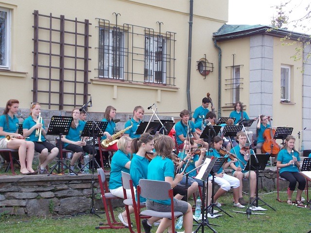 O víkendu 28. a 29.4. proběhlo soustředění školního orchestru, které bylo ukončeno koncertem na zahradě školy.
