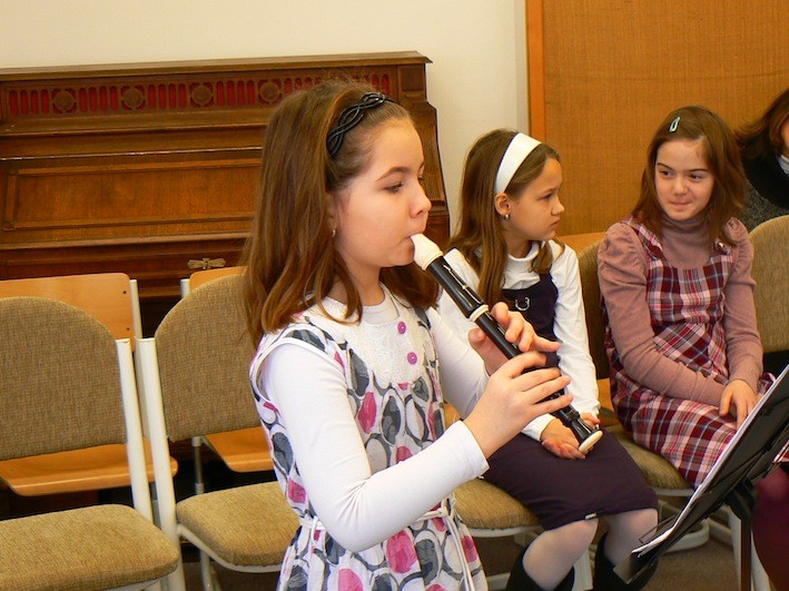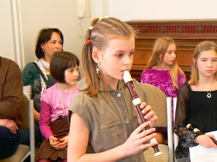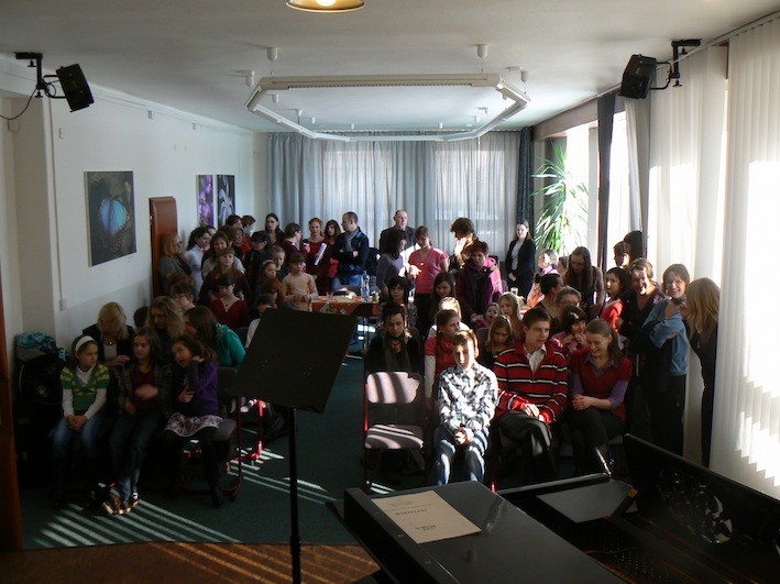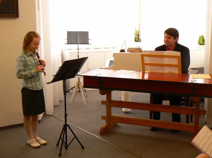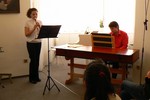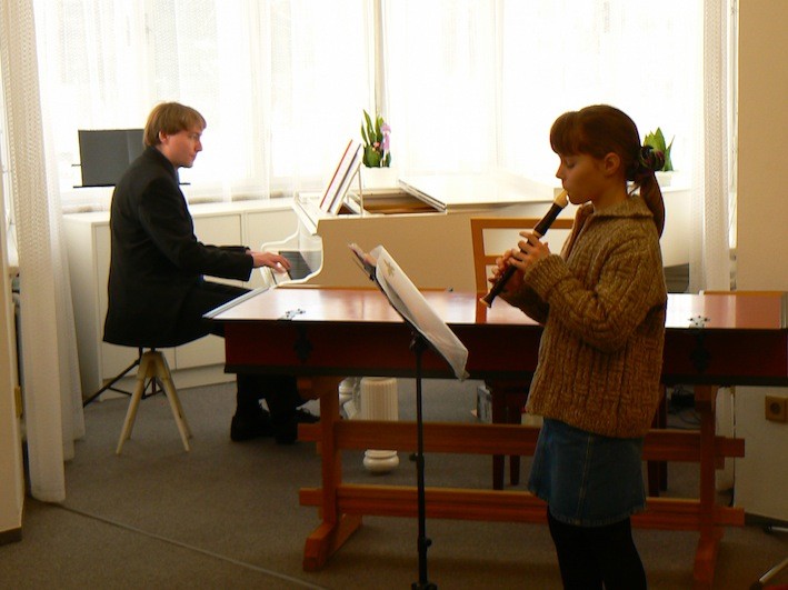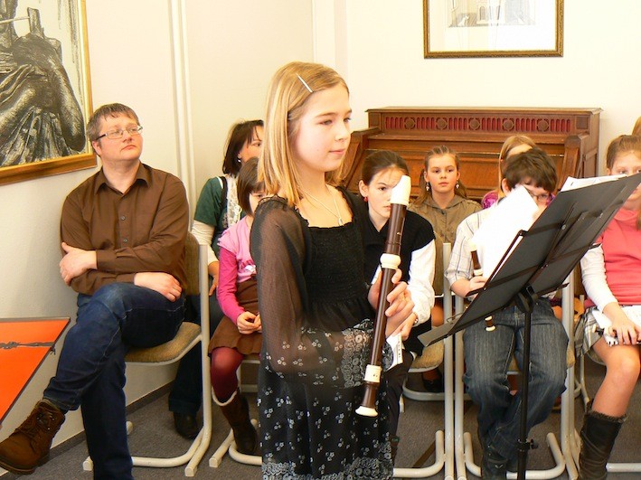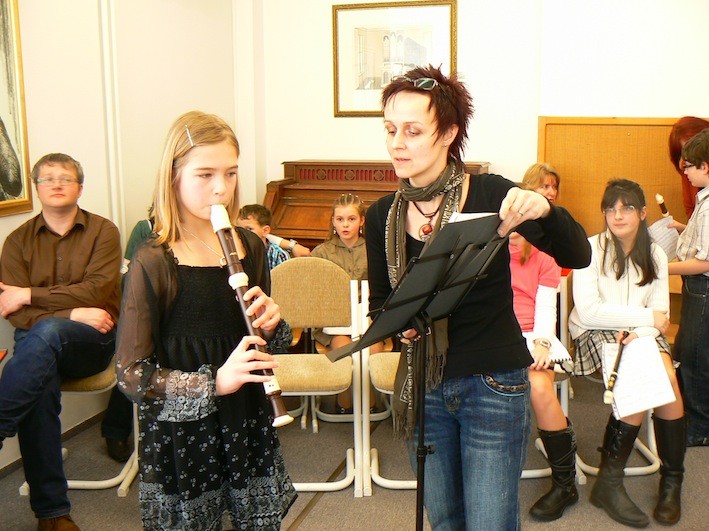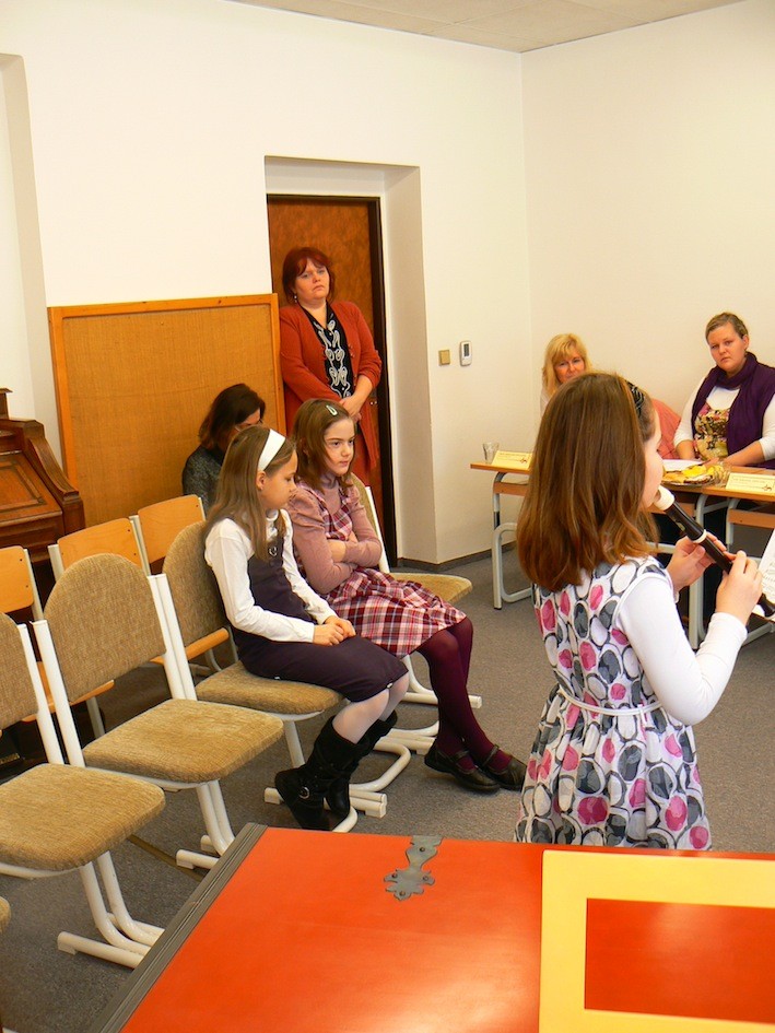 Obrázky z průběhu okresního kola soutěže žáků základních uměleckých škol ve hře na dřevěné dechové nástroje. Tuto soutěž pořádala v obou budovách naše škola.