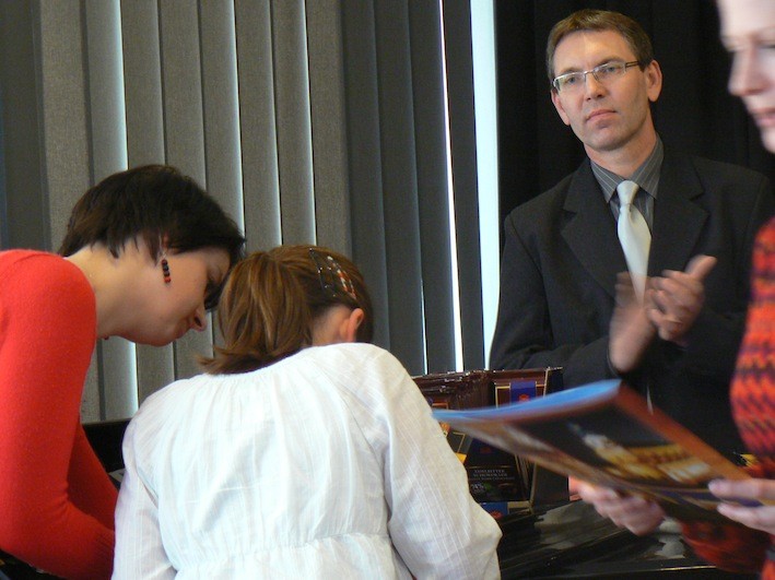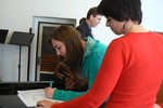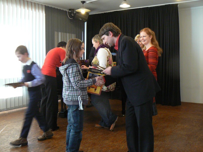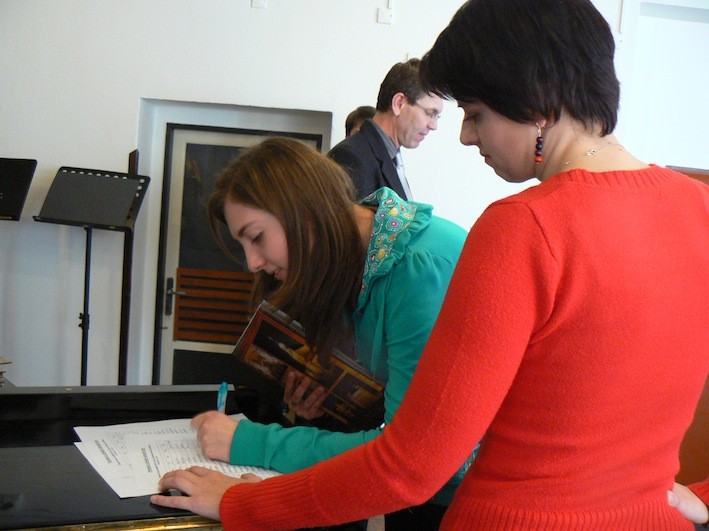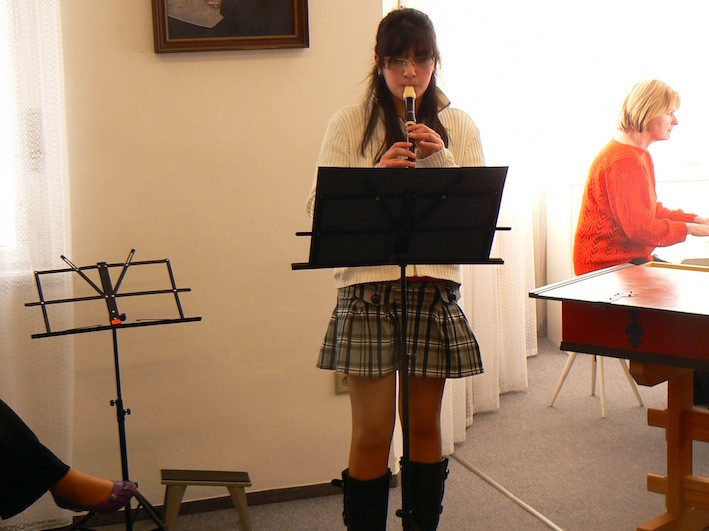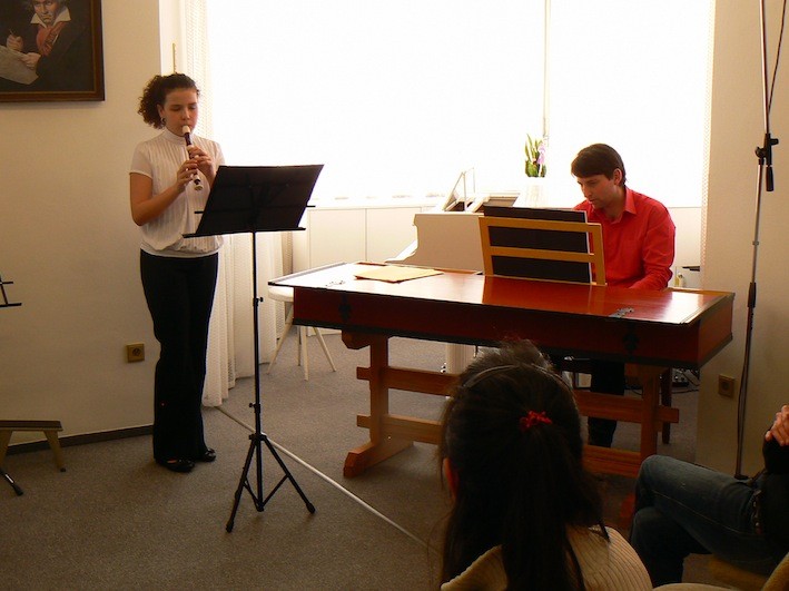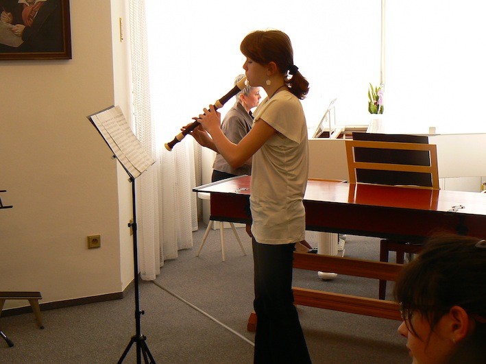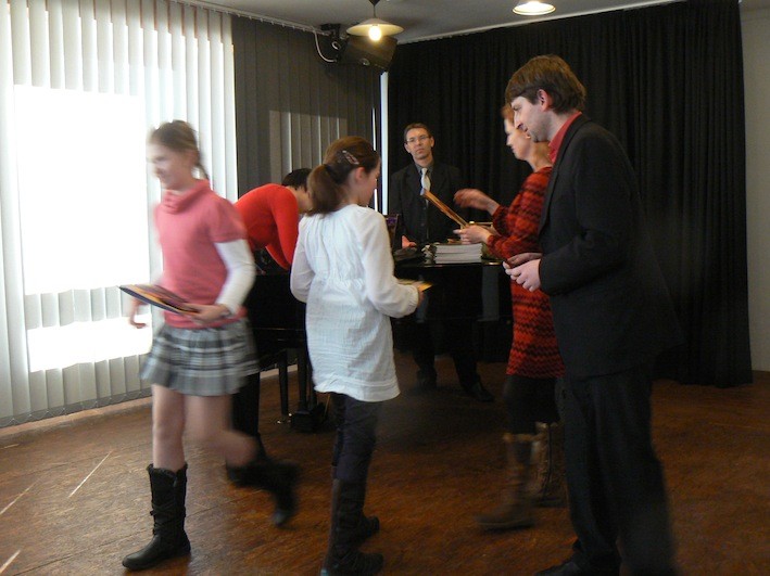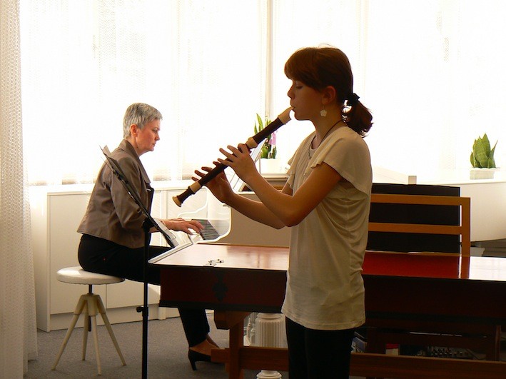 Obrázky z průběhu okresního kola soutěže žáků základních uměleckých škol ve hře na dřevěné dechové nástroje. Tuto soutěž pořádala v obou budovách naše škola.