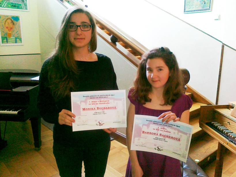 Obrázky ze soutěže na smyčcové nástroje v Úpici. HOUSLE - Barbora Sacherová - 1.místo VIOLONCELLO - Monika Bucharová - 1.místo s postupem do krajského kola