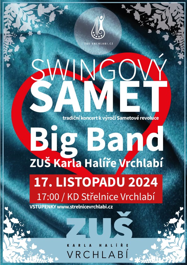 Swingový samet 2024 - tradiční koncert Big Bandu a jeho sólistů k výročí Sametové revoluce v roce 1989.