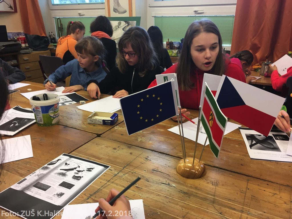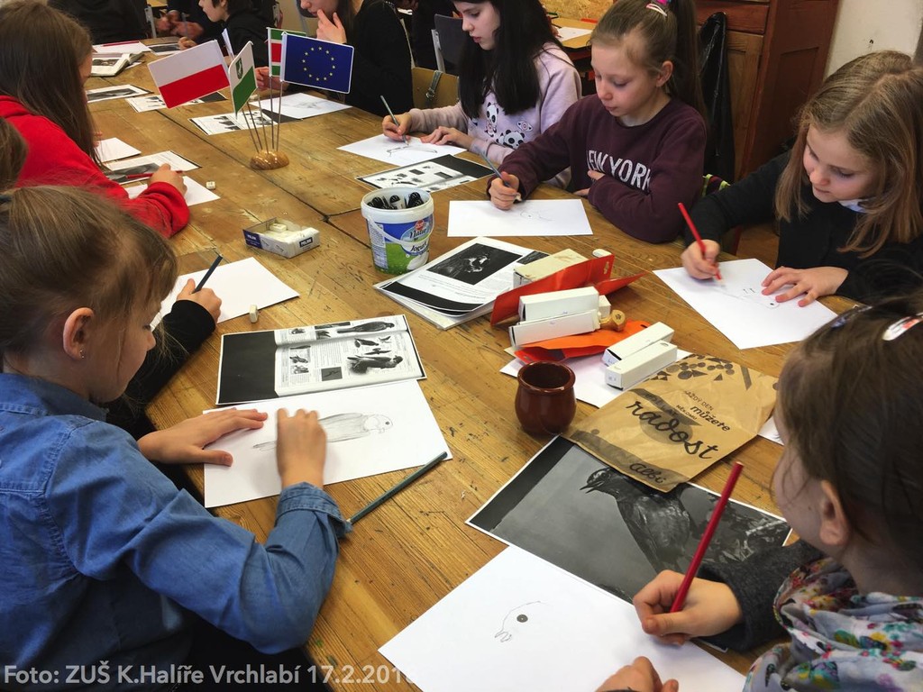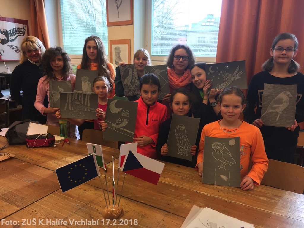 Druhé setkání v rámci projektu proběhlo v ZUŠ Karla Halíře ve Vrchlabí. V rámci celodenního setkání se děti věnovaly technice linorytu s tématickým zaměřením na ztvárnění ptactva. Po procházce městěm Vrchlabí a společném obědě v restauraci Hotelu Labuť jsme se s našimi přáteli rozloučili s tím, že se opět těšíme na společné setkání v březnu.