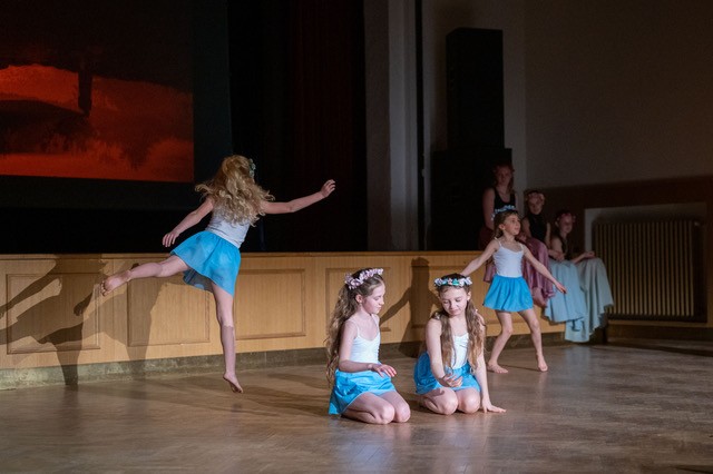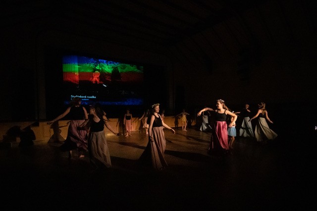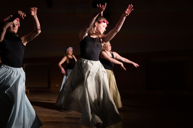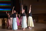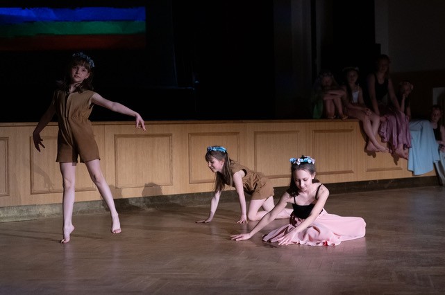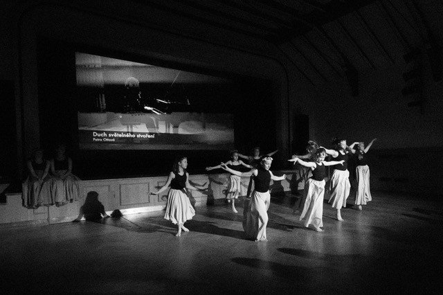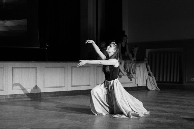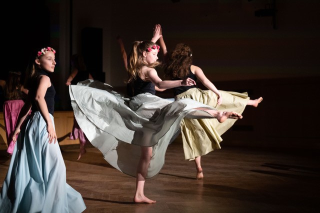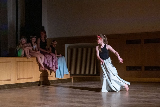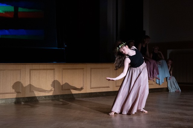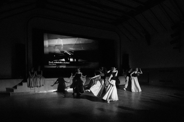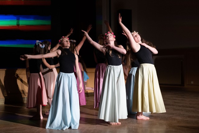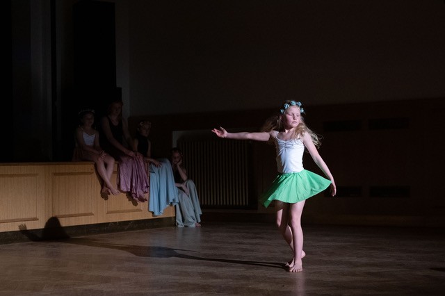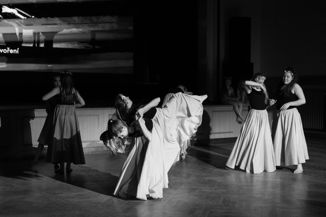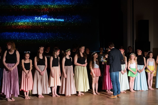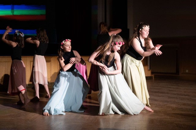 foto: Lucie Blažková Klavírní improvizace žáků Štěpánky Hrubecké na téma" bájných bytostí" (skladby žáků byly natočeny na kameru a promítány na projekční plátno), ve spolupráci s vystoupením Tanečního oboru pod vedením Kristýny Hebelkové a průvodním slovem Literárně-dramatického oboru pod vedením Přemka Jirana. "V tanečním oboru jsme s jednotlivými skladbami pracovali různým způsobem. Inspirovaly nás také texty ke skladbám, které nám pomohly v rozhodnutí se, buď pro skupinovou nebo sólovou choreografii. Podle toho, kolik postav v příběhu vystupuje. Žákyně tak měly možnost pracovat i individuálně, zapojit vlastní potenciál a kreativitu. I když byla každá skladba jinak dlouhá a dynamická, obecně na nás působily spíše melancholicky, až tajemně a v tomto duchu se nesl i tanec dívek." Kristýna Hebelková
