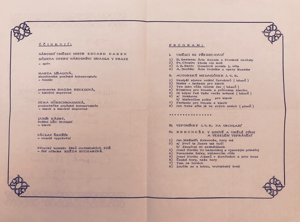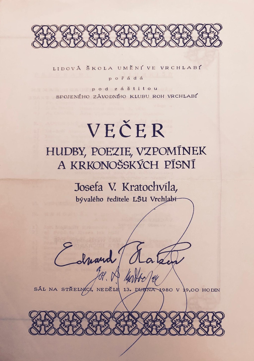 Večer hudby, poezie a vzpomínek Josefa Václava Kratochvíla