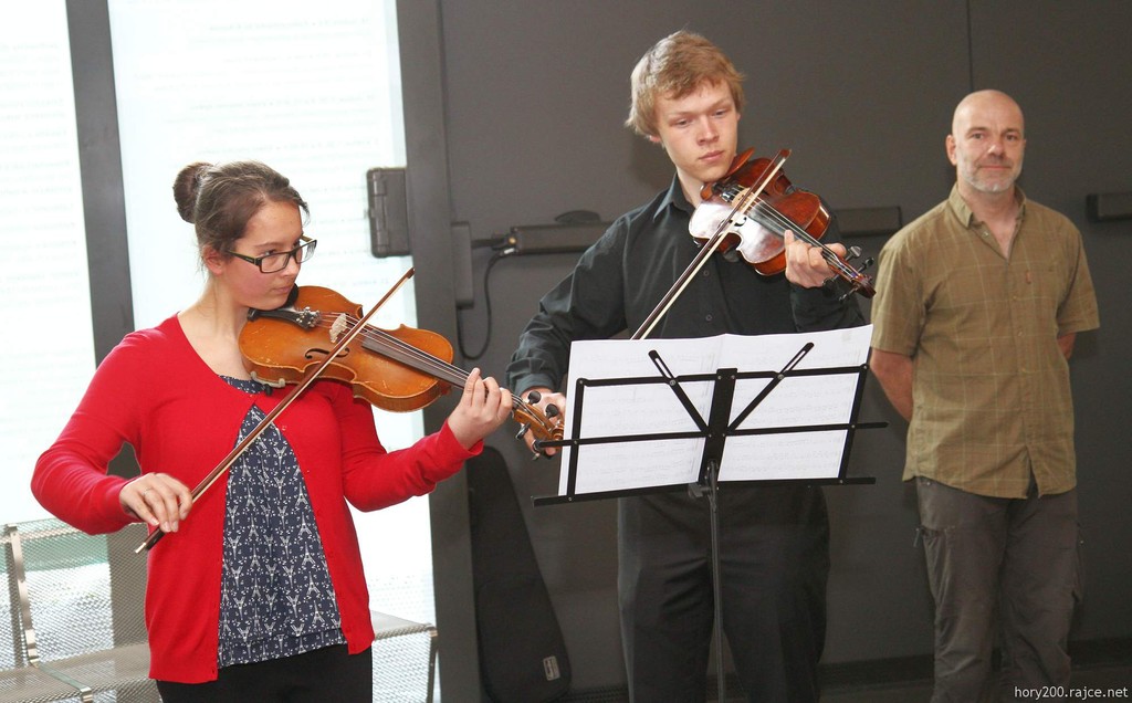 Obrázky z vernisáže výstavy malíře Rudolfa Mejsnara, na které účinkovali naši žáci - houslisté Johanka Mewaldová a David Novák. Vernisáž se konala ve čtvrtek 7.5.2015 v KCEV Krtek Vrchlabí.