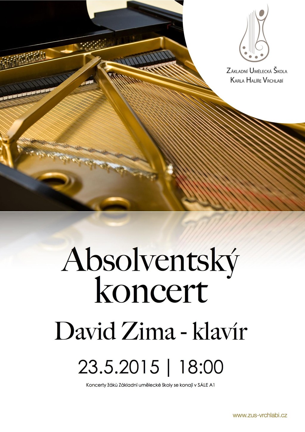 Srdečně vás zveme na absolventský koncert Davida Zimy, žáka z klavírní třídy Anny Lochmanové.