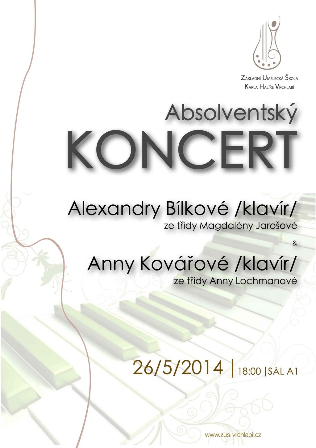 Absolventský koncert - Alexandra Bílková, klavír (ze třídy M.Jarošové) a Anna Kovářová (ze třídy A.Lochmanové