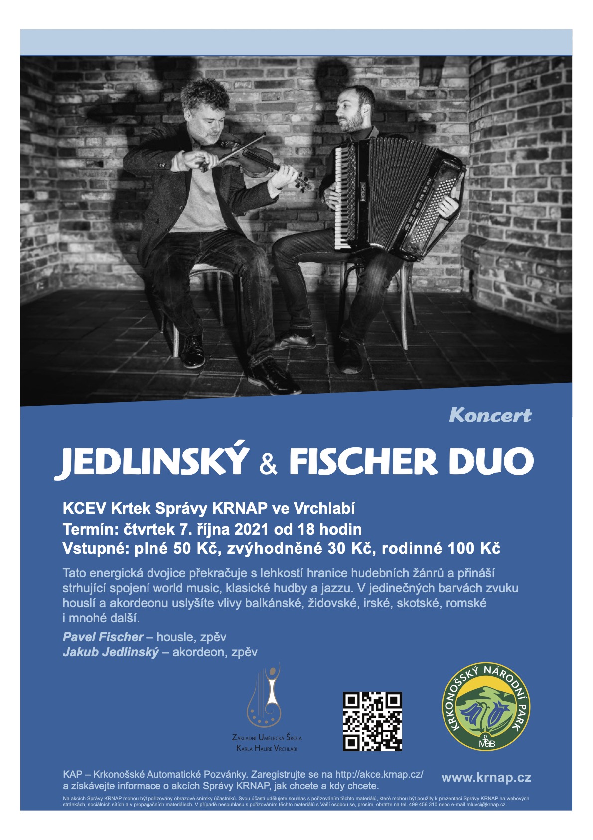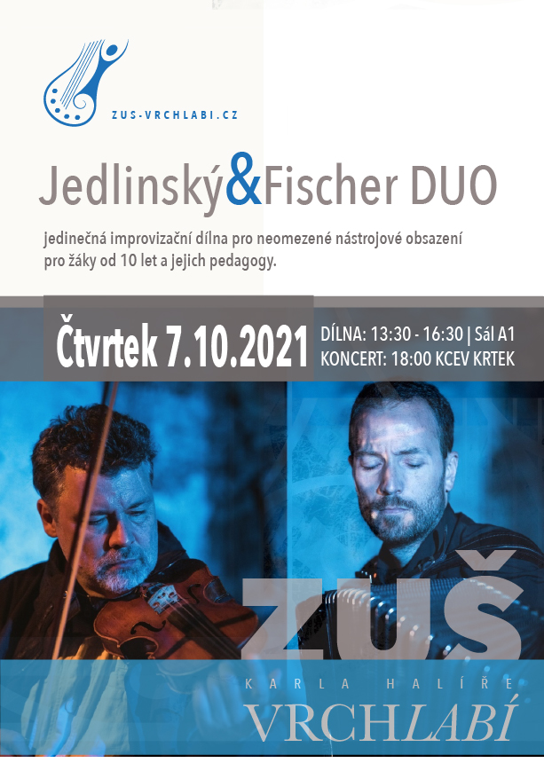 Jedinečná improvizační dílna s akordeonistou Jakubem Jedlinským a houslistou Pavlem Fischerem.