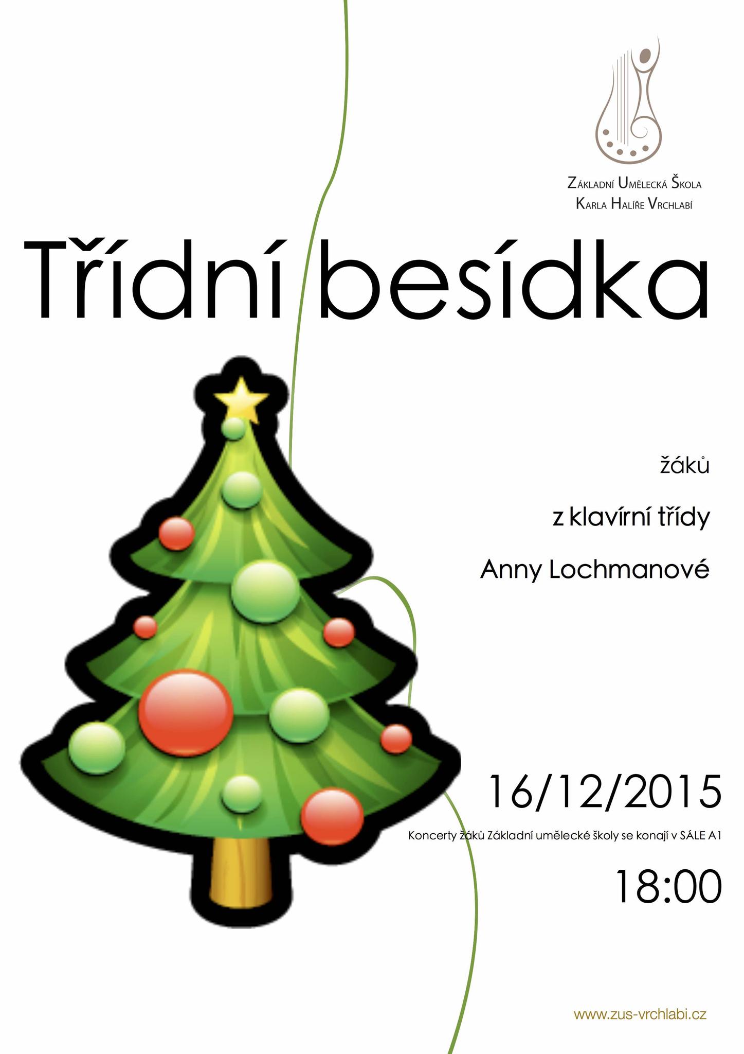 Dovolujeme si vás co nejsrdečněji pozvat na vánoční třídní besídku žáků ze třídy paní učitelky Anny Lochmanové (klavír).