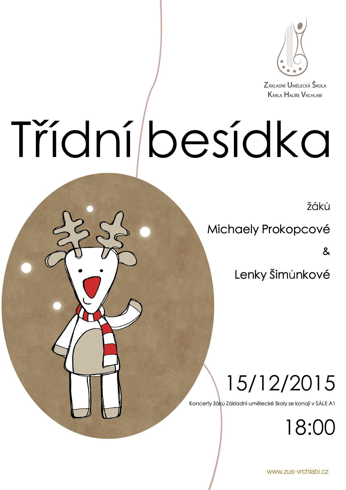 Dovolujeme si vás co nejsrdečněji pozvat na vánoční třídní besídku žáků ze třídy Michaely Prokopcové (akordeon, klavír) a Lenky Šimůnkové (zpěv).