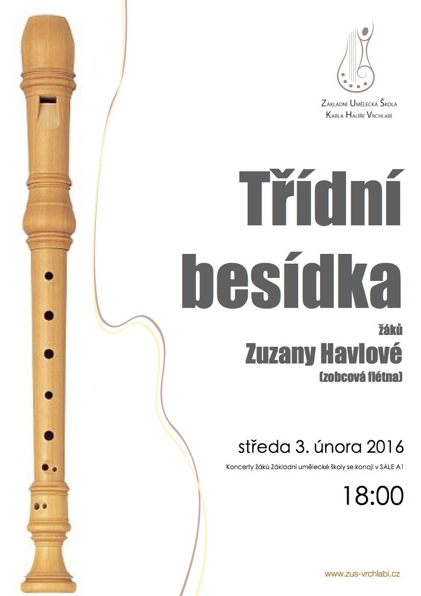Srdečně vás zveme na besídku žáků z flétnové třídy paní učitelky Zuzany Havlové.