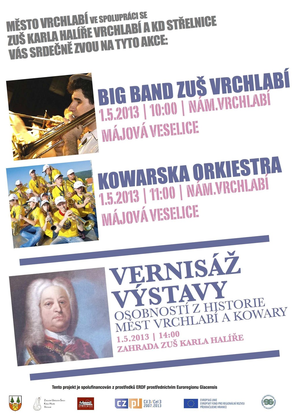 V rámci projektu Výročí měst Kowary a Vrchlabí vystoupí na Májové veselici Big Band ZUŠ Vrchlabí a Kowarska Orkiestra Rozrywkowa.