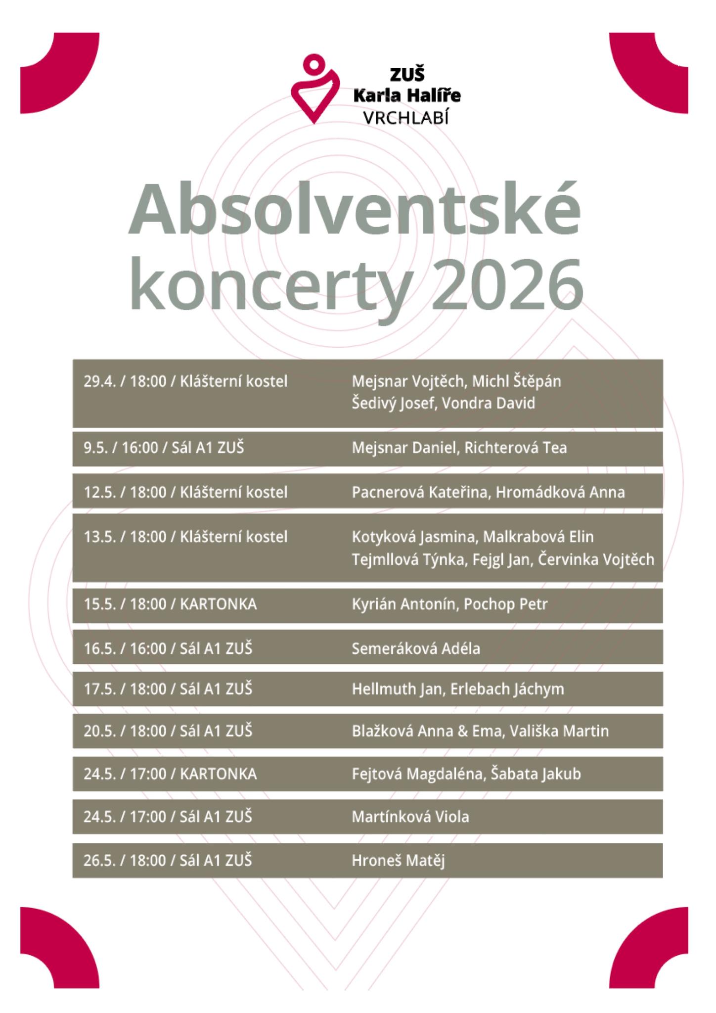 Absolventské koncerty v roce 2026
