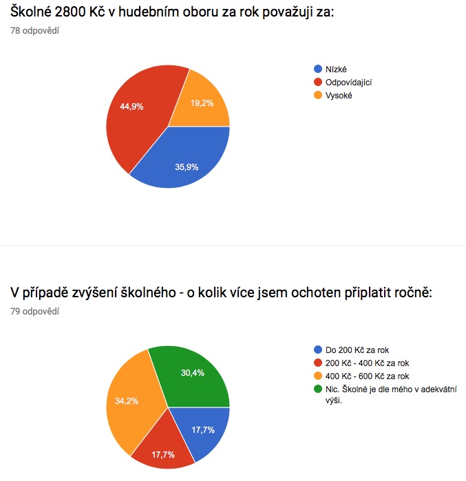 Děkujeme vám všem za ochotu vyplnit náš dotazník, který se týkal výše školného v hudebním oboru. Na základě výsledků tohoto dotazníku dojde od nového školního roku 2017/2018 k úpravě výše úplaty v hudebním oboru, a to o 200 Kč / školní rok v individuálním studiu. Přehled úplaty za vzdělávání v naší škole naleznete ZDE.