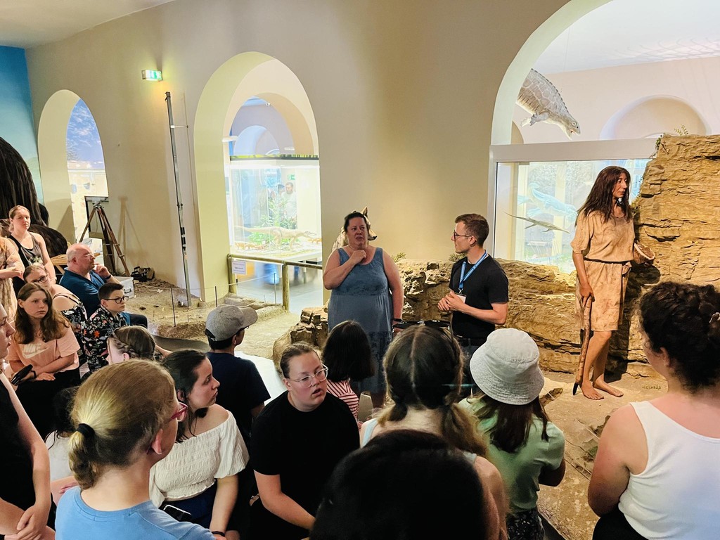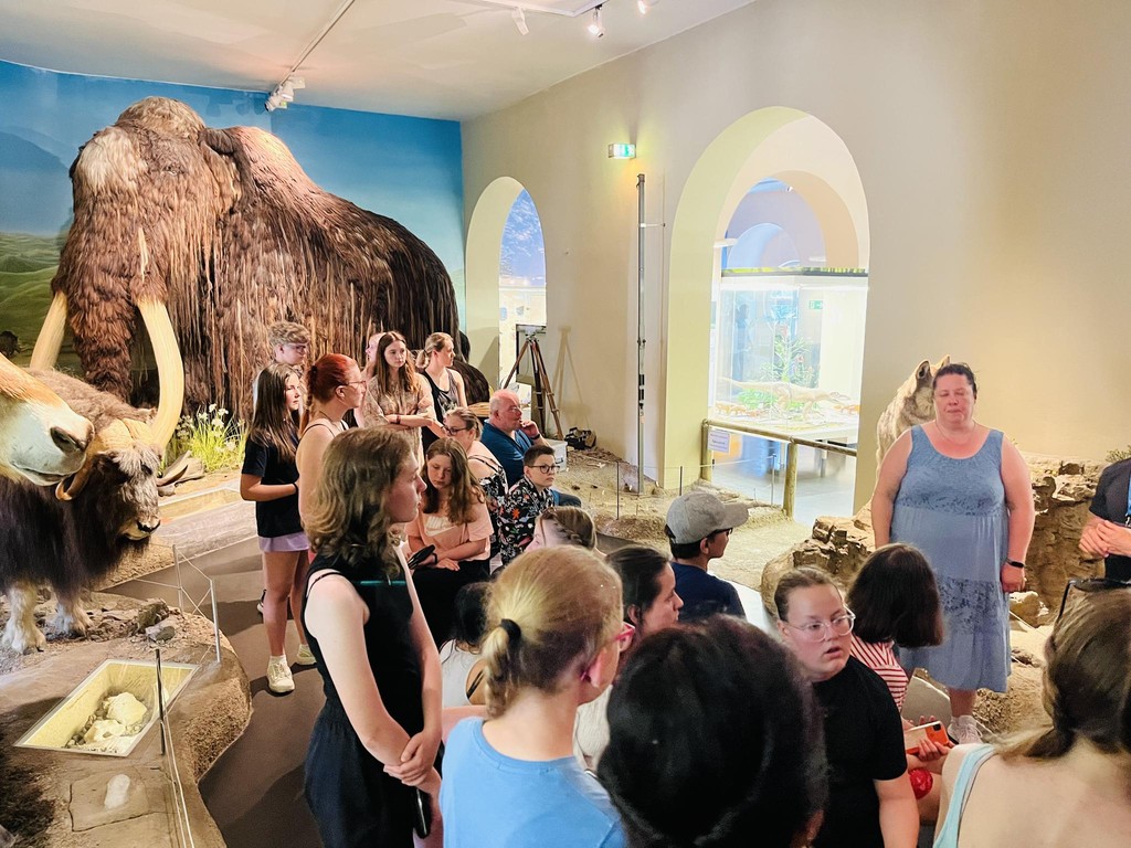 Náš čtvrtý den začal odjezdem tramvají z Baunatalu do Kasselu, kde jsme na vštívili Přírodovědné muzeum (Naturkundemuseum). To je umístěné v budově Ottonea, nejstaršího kamennégho divadla v Německu. Velmi zajímavá prohlídka muzea s průvodcem a překladatelkou Klárou Haubenreißer nám představila vývoj lidského druhu od pravěku k současnosti. Po prohlídce muzea se nás část odebrala navštívit Martinskirche, kostel, který byl za druhé světové války postižen bombardováním, byl zrekonstruován a dnes se v něm nacházejí druhé největší varhany v Německu. Odpoledne jsme tradičně strávili pilováním našeho koncertního repertoáru a všichni jsme se shodli, že skladby, které hrajeme jsou moc pěkné a moc se těšíme na koncert. V podvečer jsme také zabalili naši výstavu obrazů a proběhl transport do kostela v Kirchbauna, kde máme zítra koncert. Už se moc těšíme na náš akordeonový soubor, až rozbalí svého Johna Williamse :-)