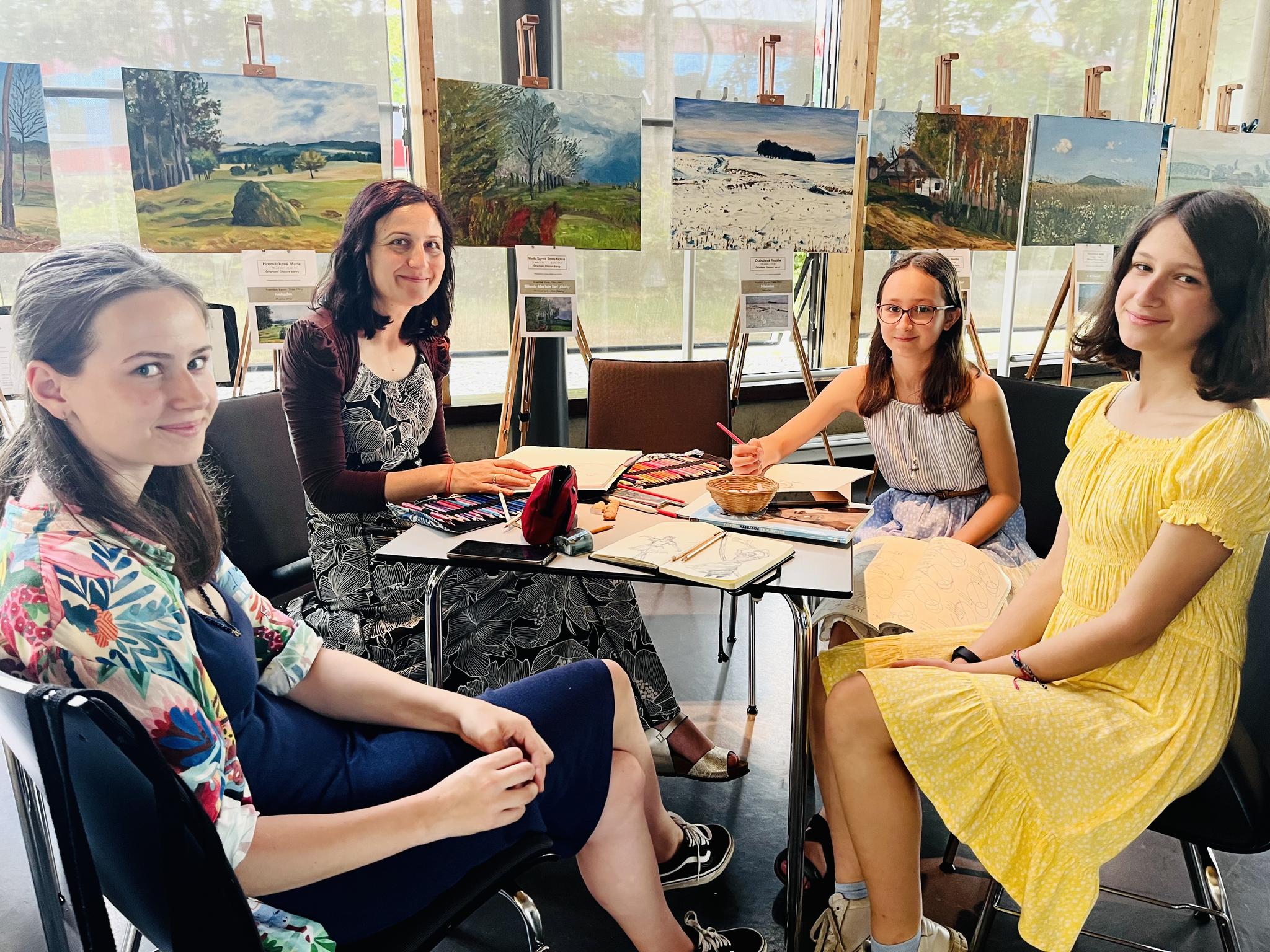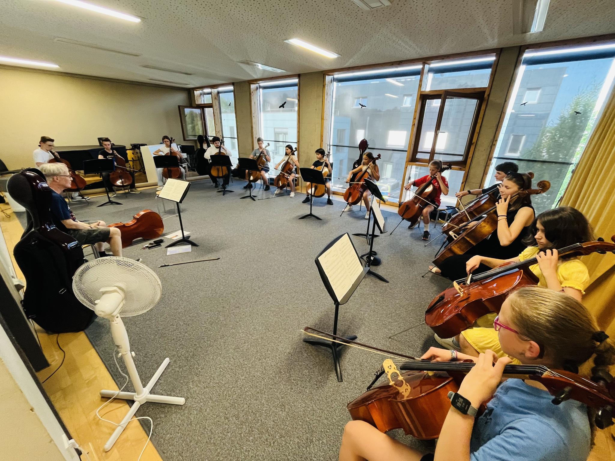 Naše dny v Baunatalu jsou ve znamení veder - ve škole je ovšem lépe než venku, takže si celodenní muzicírování moc užíváme!!! Pomalu s blížícím se dnem našeho koncertu dostává náš orchetstrální repertoár jasnější obrysy - sedm nastudovaných orchestrálních děl je výsledek, ve který jsme nedoufali!!! Mozart, Beethoven, Elgar, Brahms a další...bude to krásný koncert!!! Náš akordeonový soubor pilně cvičí také celé dny a pilují své skladby k dokonalosti :-) Bude to zážitek, až se Williamsova hudba rozezní baunatálskou městskou halou!!!!!! Dnes také došlo na nácvik komorních skladeb, flétnistka Zuzanka Šustková spolu s violoncellistkou Luckou Pekárkovou studovaly svůj repertoár pod pedagogickým vedením pana ředitele Joachima Arndta, baunatálský violoncellista Jonas Belz v doprovodu Radka Hanuše cvičí překrásné Adagio pro violoncello a klavír Maxe Brucha. Violonelisté obou škol cvičí ve společném ansámblu pod vedením Christopha Belze a zní jim to jako vždy překrásně!!!!!A co výtvarka? Tvoří a tvoří a paní učitelka Ivanka je nám oporou vždy, když nám síly docházejí :-)