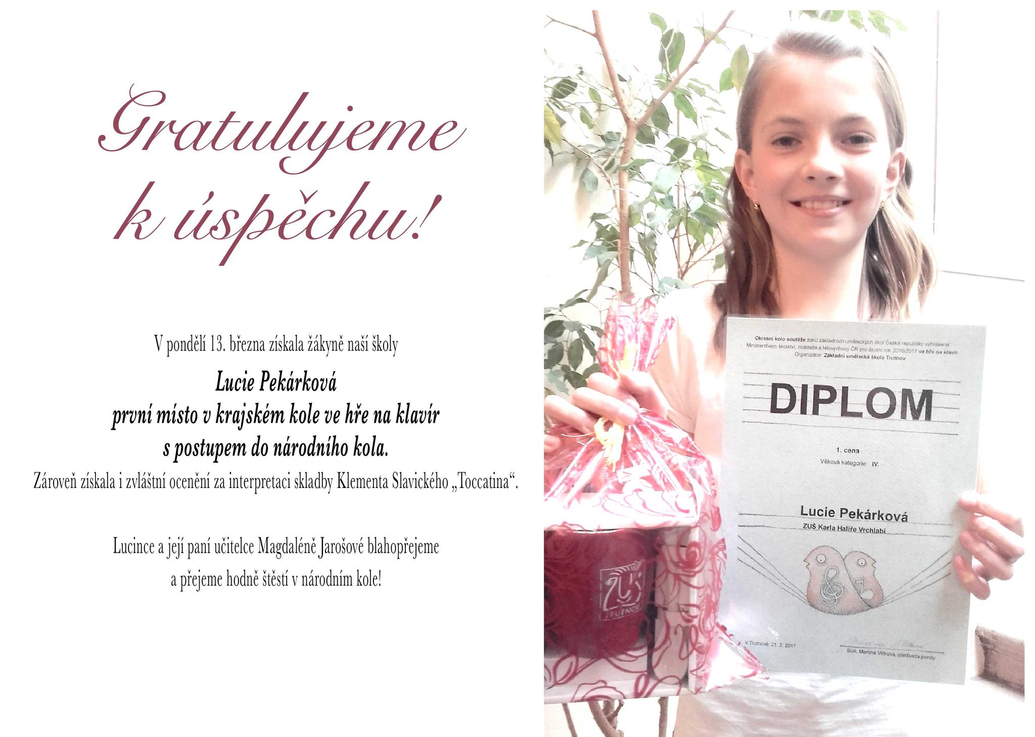 Blahopřejeme k úspěchu Lucii Pekárkové