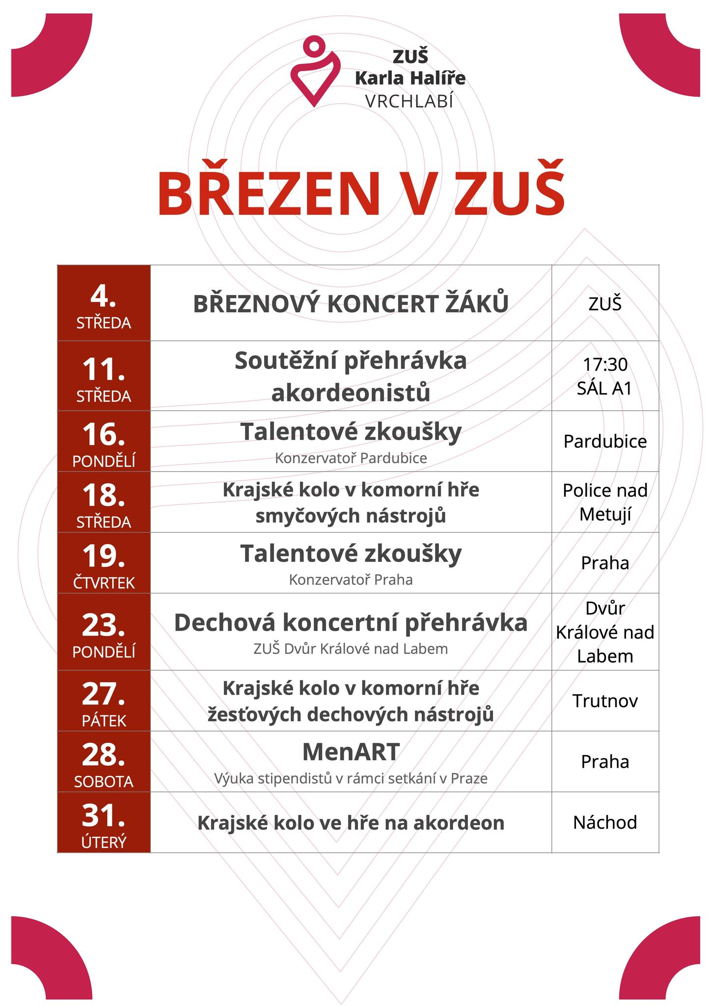 Březen v ZUŠ - přehled akcí školy