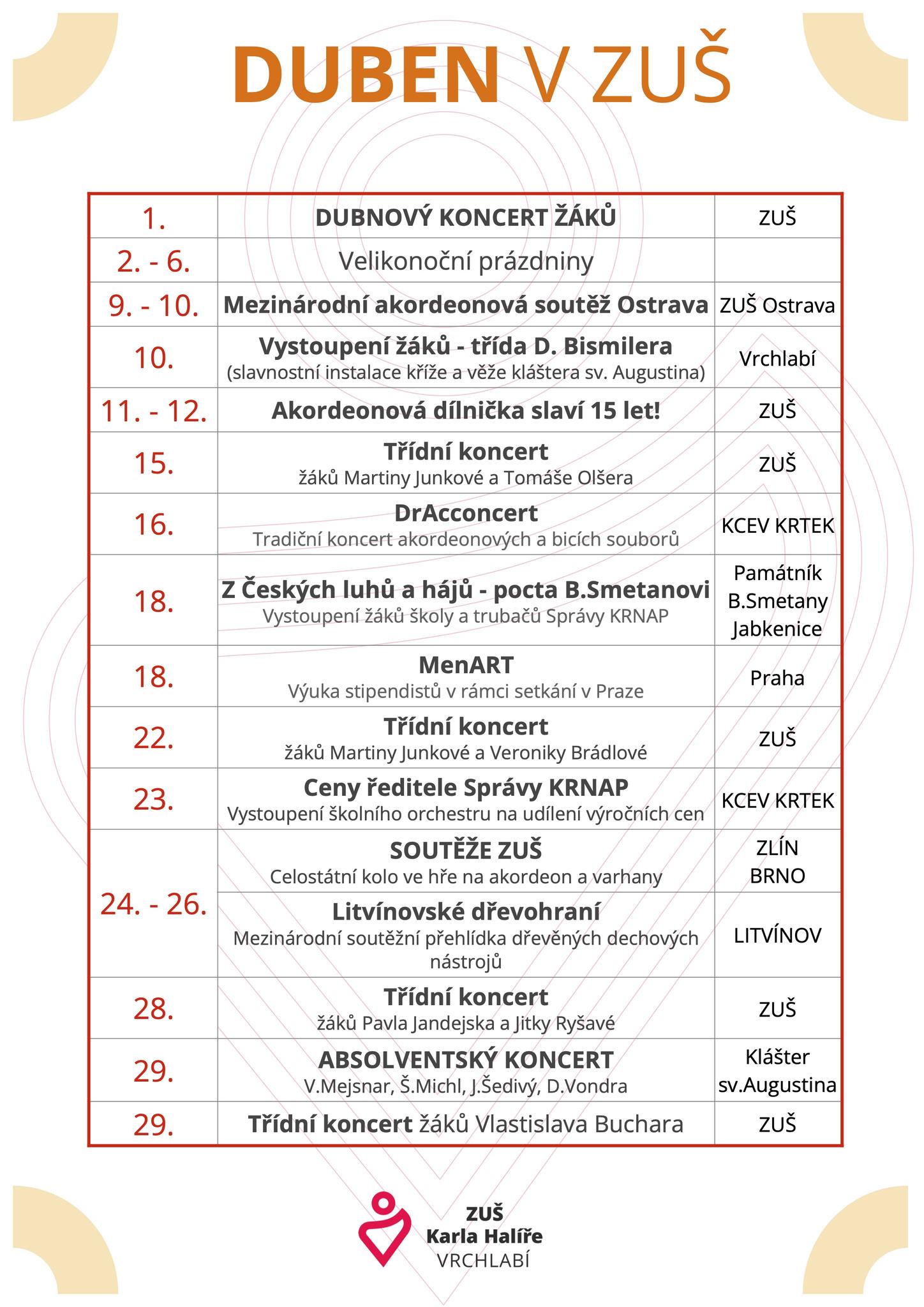 Duben v ZUŠ - přehled akcí školy