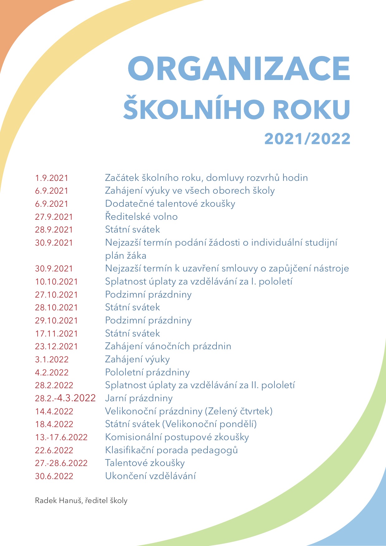 ORGANIZACE ŠKOLNÍHO ROKU 2021/2022