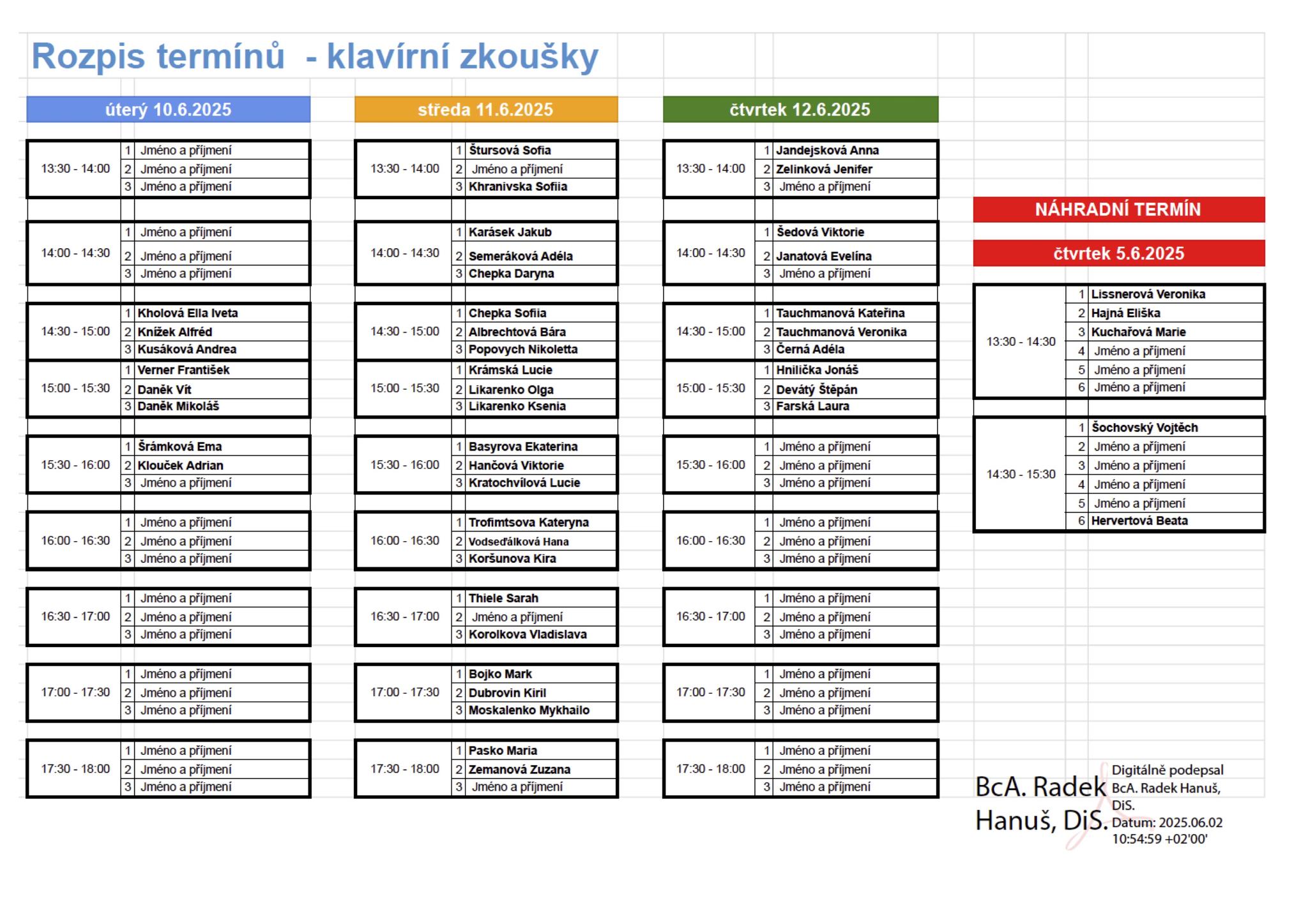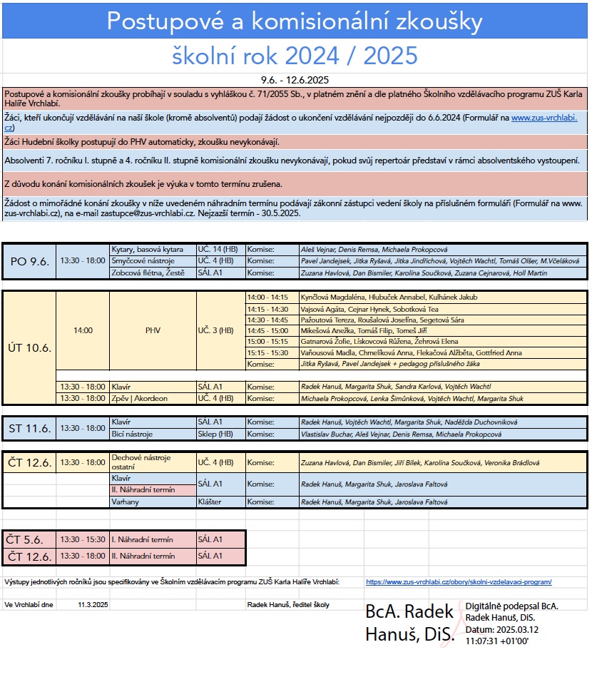 Komisionální postupové a závěrečné zkoušky 2025