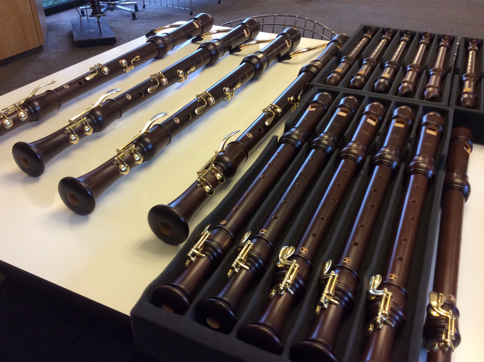 Konsort barokních zobcových fléten od firmy MOECK, sídlíci v krásném historickém městě Celle nedaleko Hannoveru v Německu, byl zakoupen pro potřeby našich flétnových souborů a komorních těles. Všechny flétny splňují vysoké nároky na současnou, neustále se zvyšující úroveň výuky hry na zobcovou flétnu - zejména však na hru souborovou a komorní. Tato naše nová rodina fléten byla pečlivě vybrána tak, aby všechny nástroje v ansámblu zněly zvukově kompaktně. Všechny jsou tedy z jednoho druhu mořeného dřeva (javor) a jedná se o vyšší kategorii ze sortimentu výrobce, tedy flétny třídy ROTTENBURG (největší basová flétna je kategorie RONDO). Celý konsort se skládá z těchto zobcových fléten: sopránová, dvě altové, dvě tenorové a jedna basová.