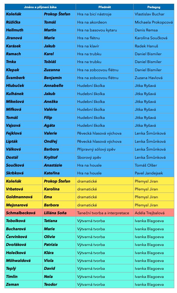 Rozdělení k pedagogům - začínající žáci od září 2023