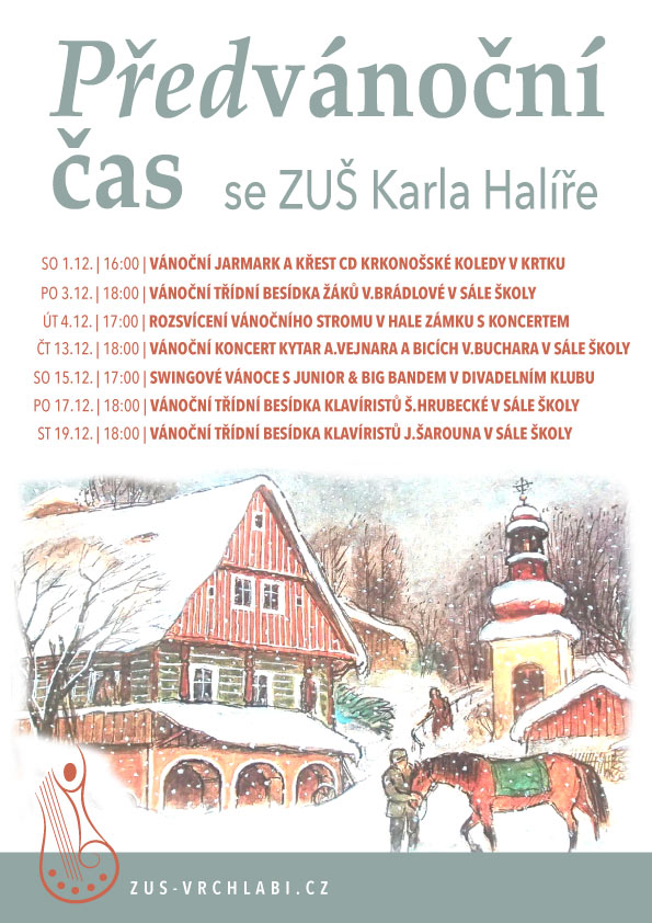 Pestrost námi pořádaných koncertů a nejrůznějších akcí letošních Vánoc nás přiměla k tomu, abyste již nyní byli seznámeni s naším programem a mohli si udělat čas na některé z vánočních setkání s námi. I když v letošním roce neproběhne tradiční vánoční koncert v KD Střelnice, máte se jistě na co těšit i na ostatních místech našeho města.
