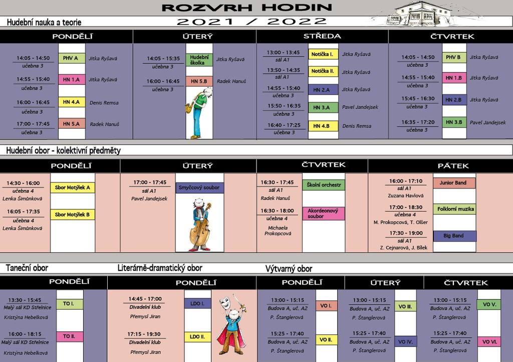 Zapisování do příslušné skupiny A, B předmětů Hudební nauka a PHV (Přípravná hudební výchova) se provádí na hlavní nástěnce školy v hlavní budově od 1.9.2021