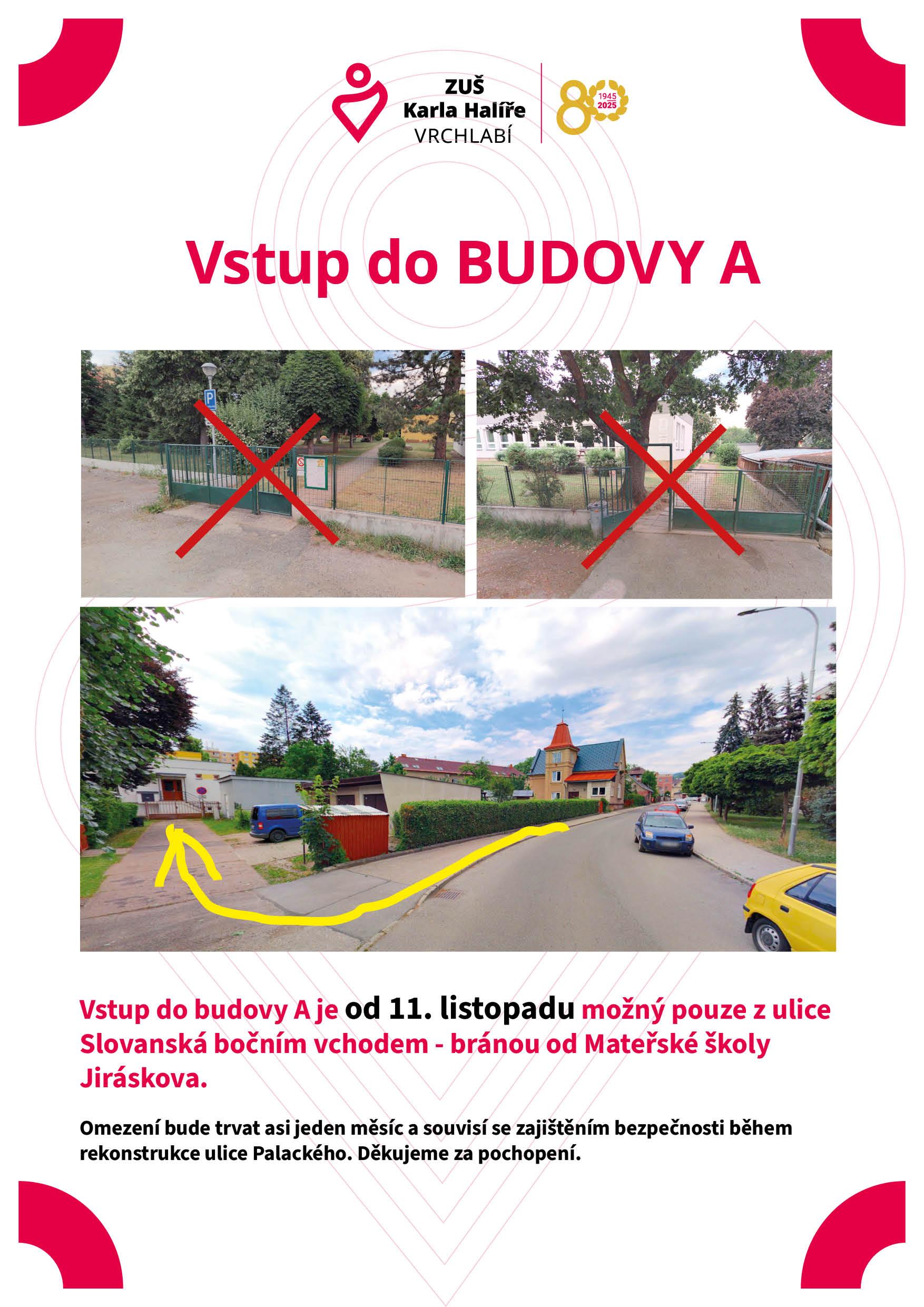 Vstup do budovy A tak bude umožněn pouze z ulice Slovanská, a to boční bránou k mateřské škole.